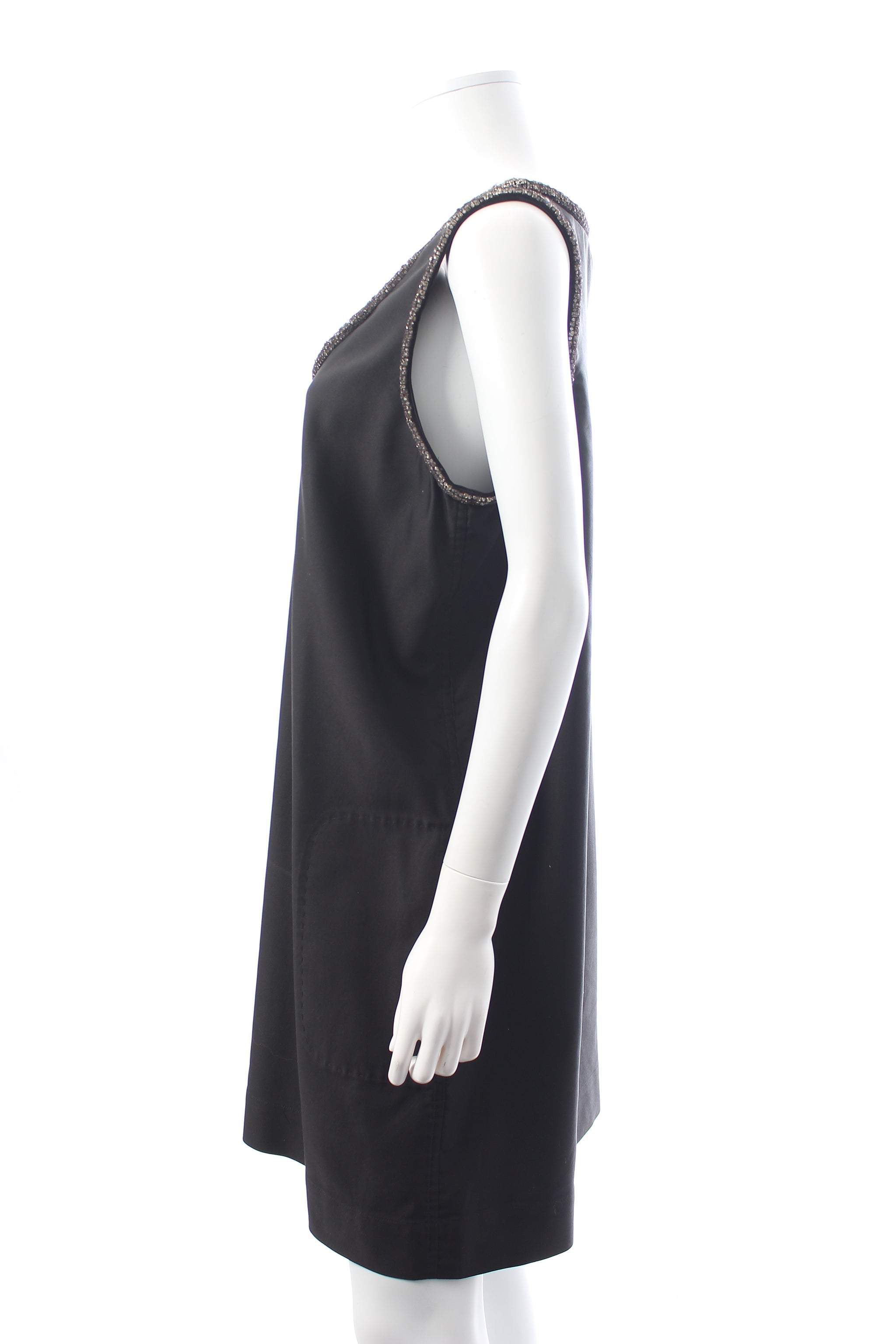 Sleeveless mini dress from Lanvin with a shift cut in cotton and silk-blend. Finished with crystal embellishments
