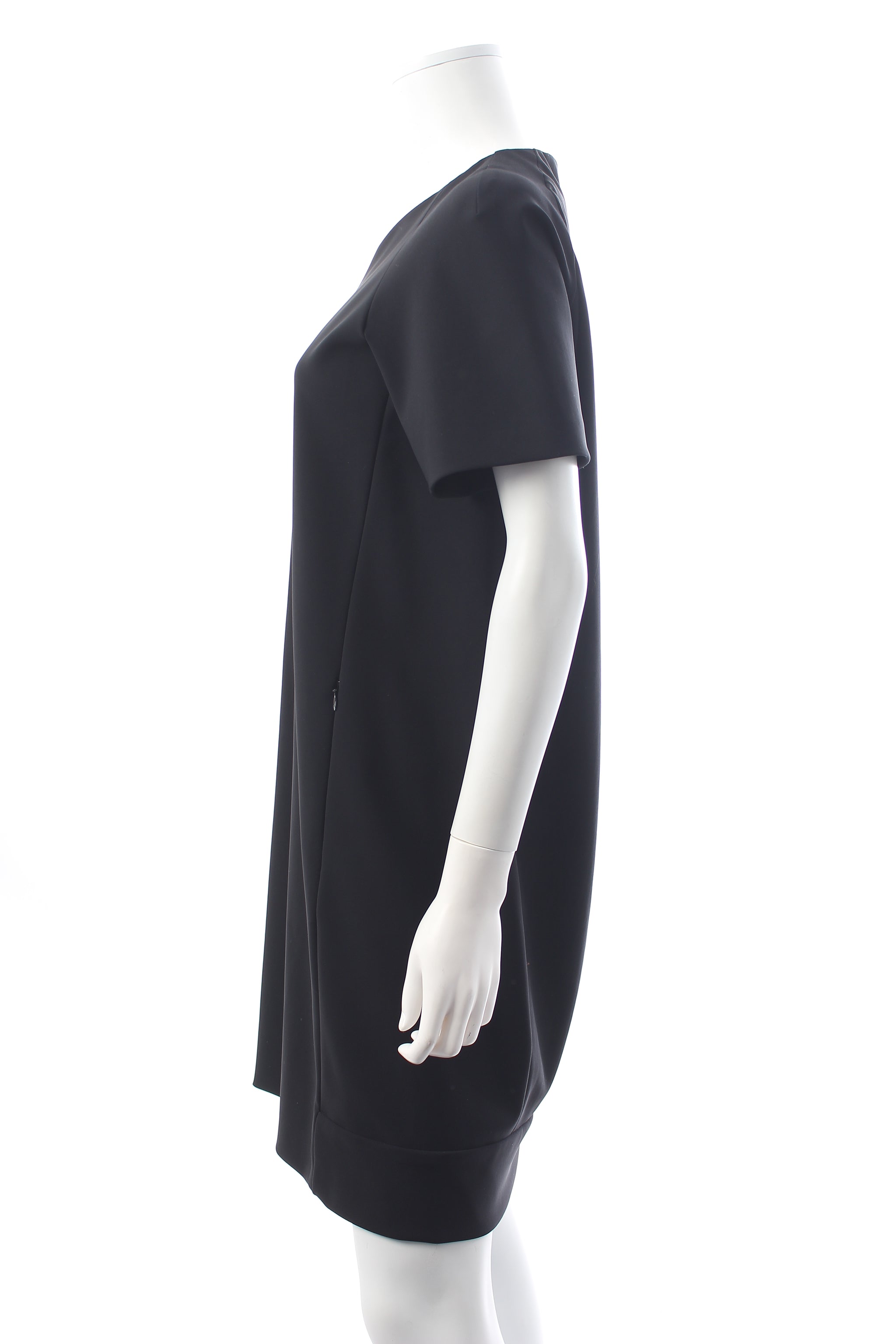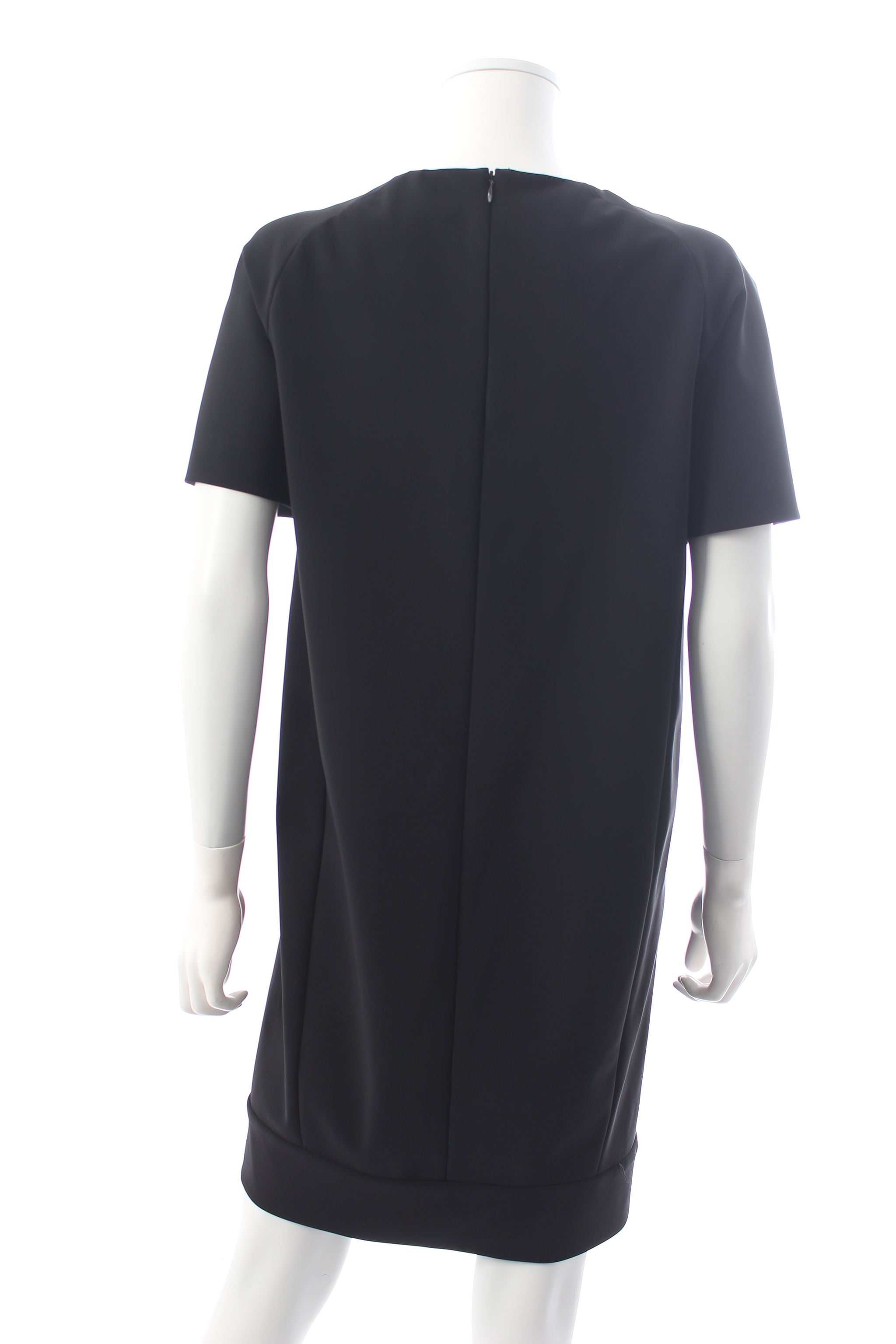 An easy-to-wear mini dress in a tech stretch-crepe fabric. Paneled design with zippered pockets. Round neck, short sleeves, zip fastening at the back