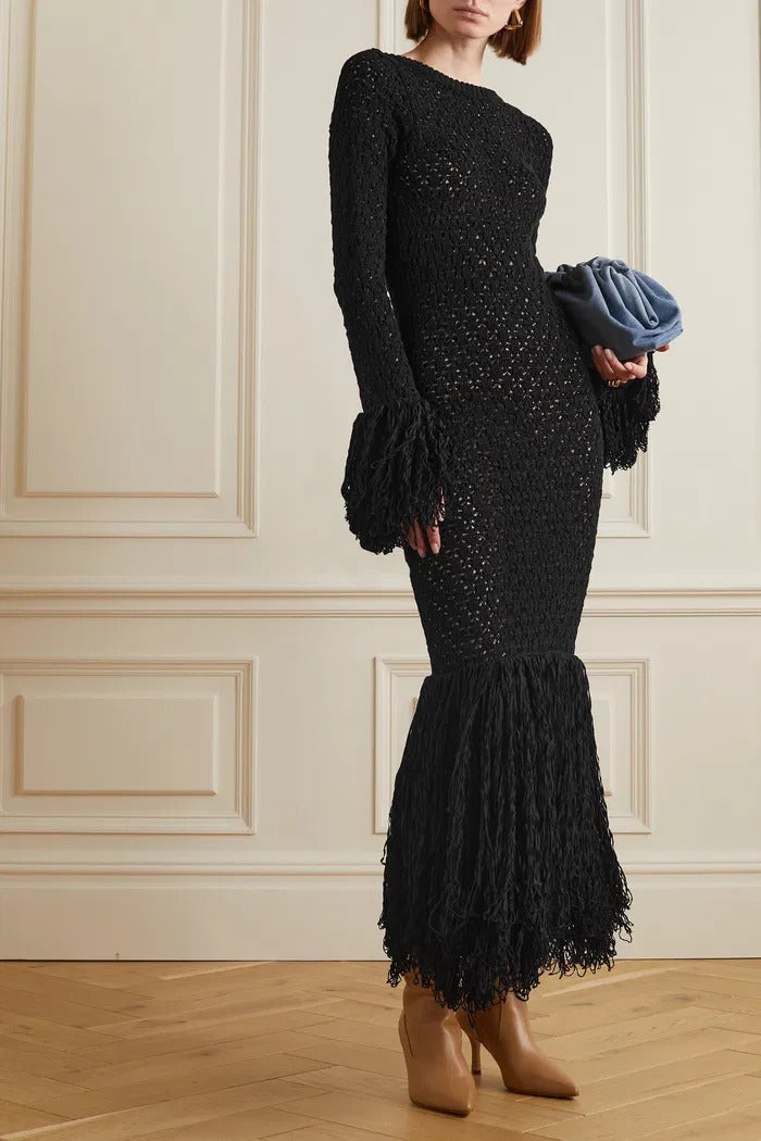 ROTATE Birger Christensen Open Back Fringed Knit Dress