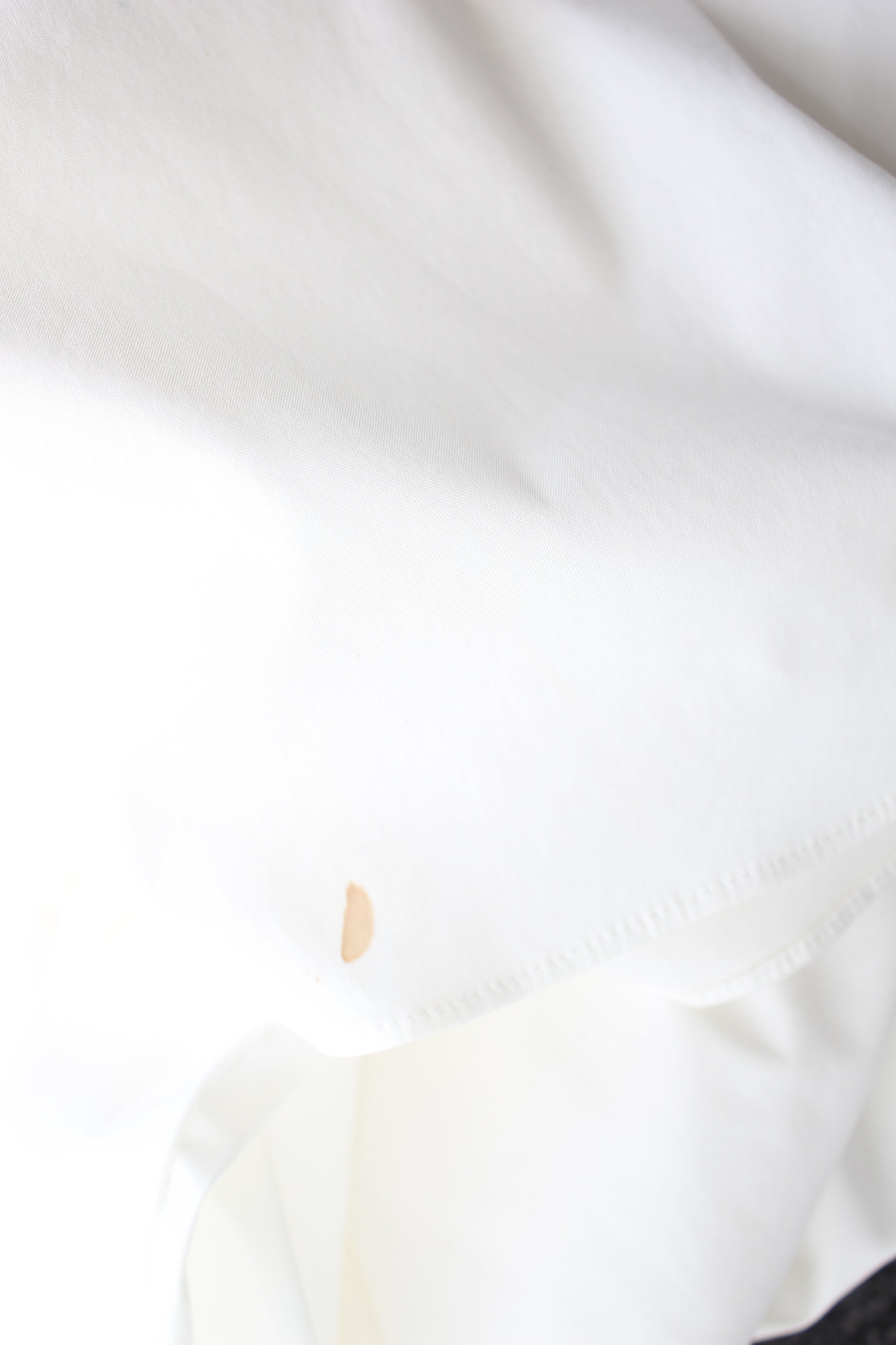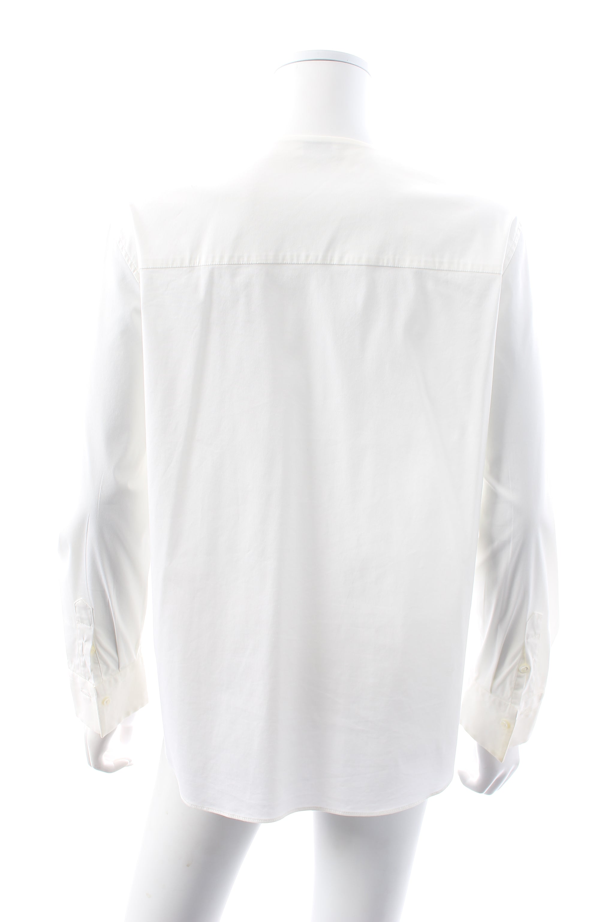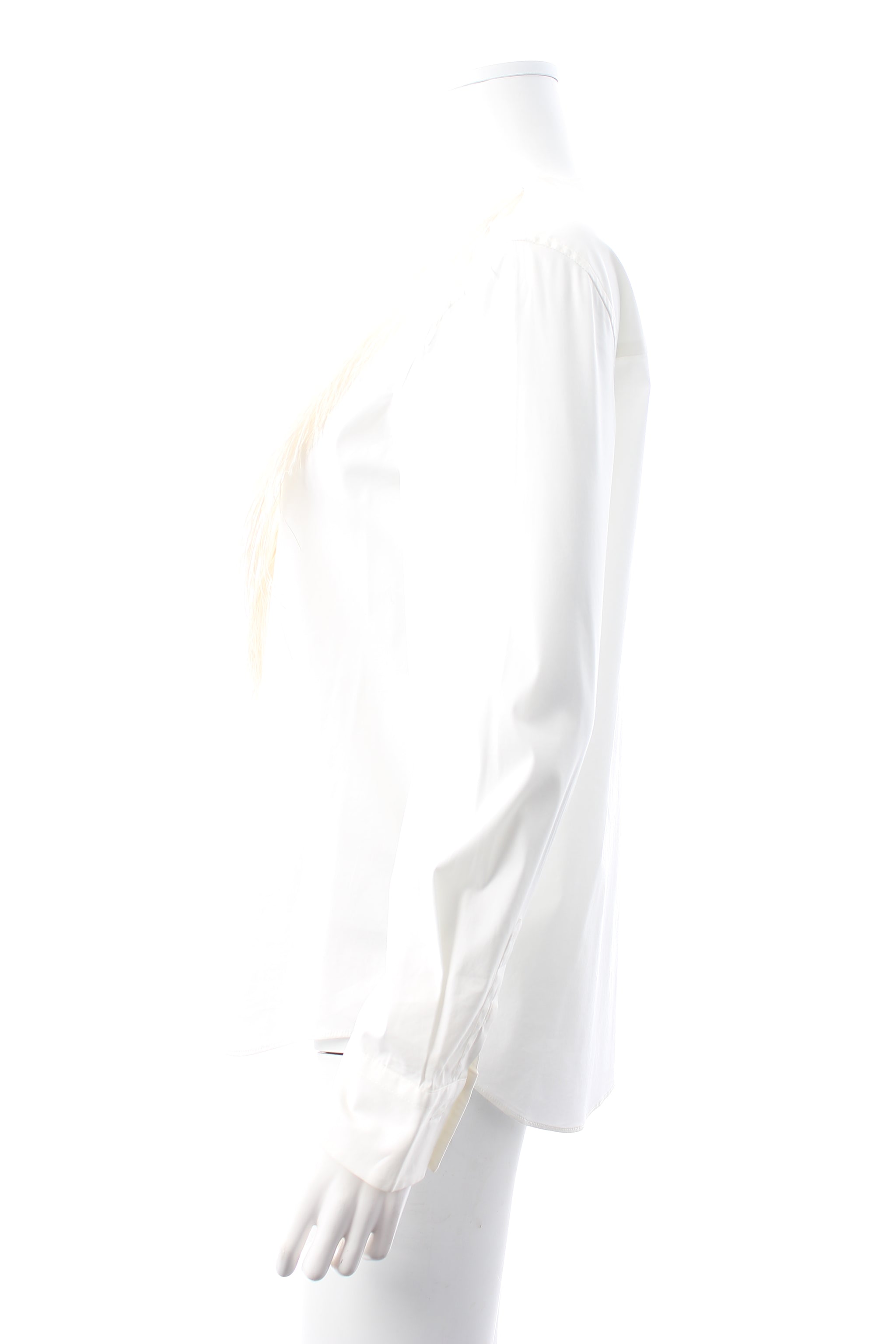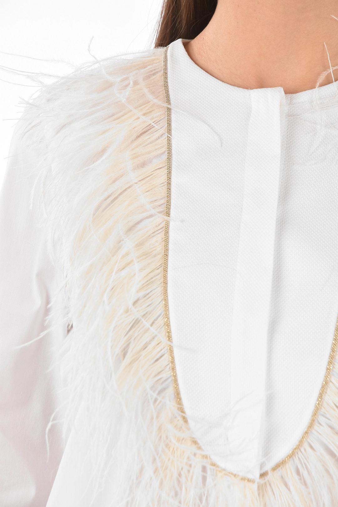 Cotton-poplin shirt with signature beads and feather trim. Concealed button fastenings through the front