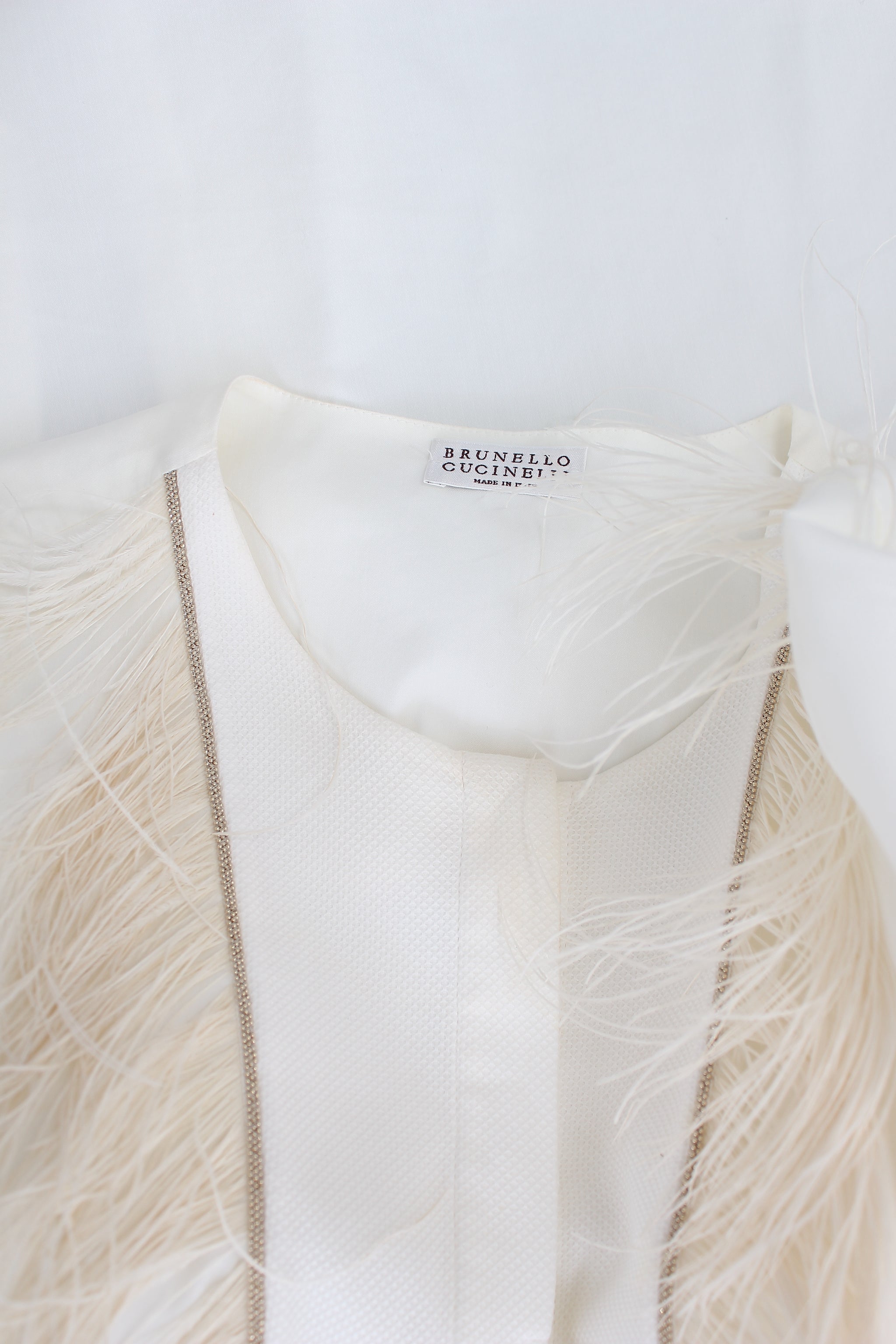 Brunello Cucinelli Feather-Trimmed Cotton Shirt