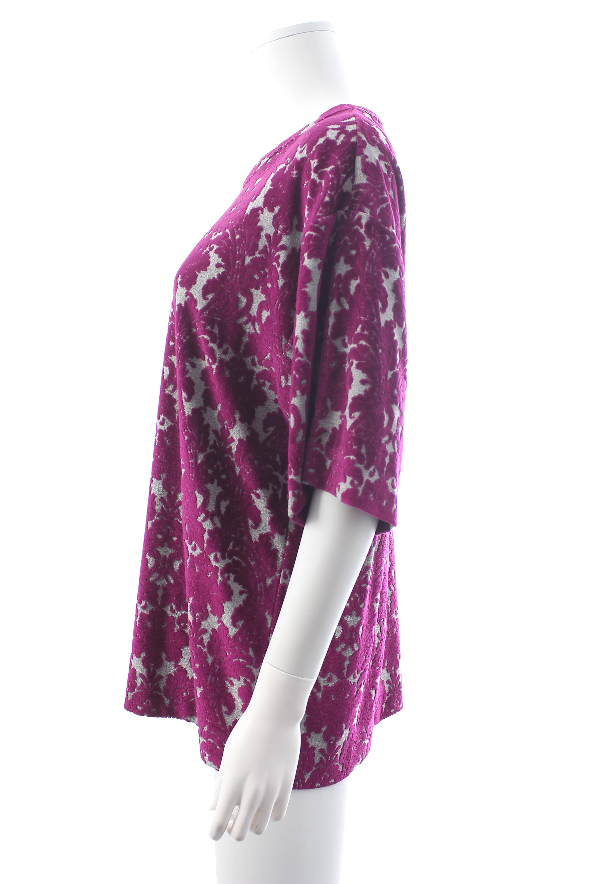 Rich textures and patterns elevate this classic style T-shirt. The style has a loose fit and a sumptuous brocade-inspired velvet jacquard pattern throughout