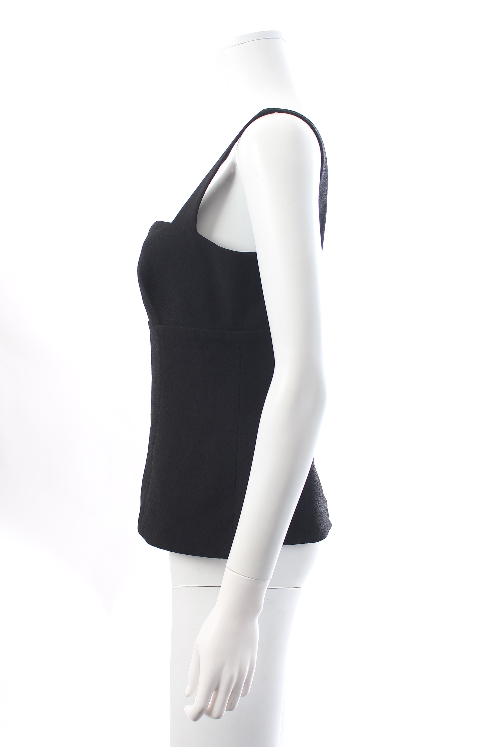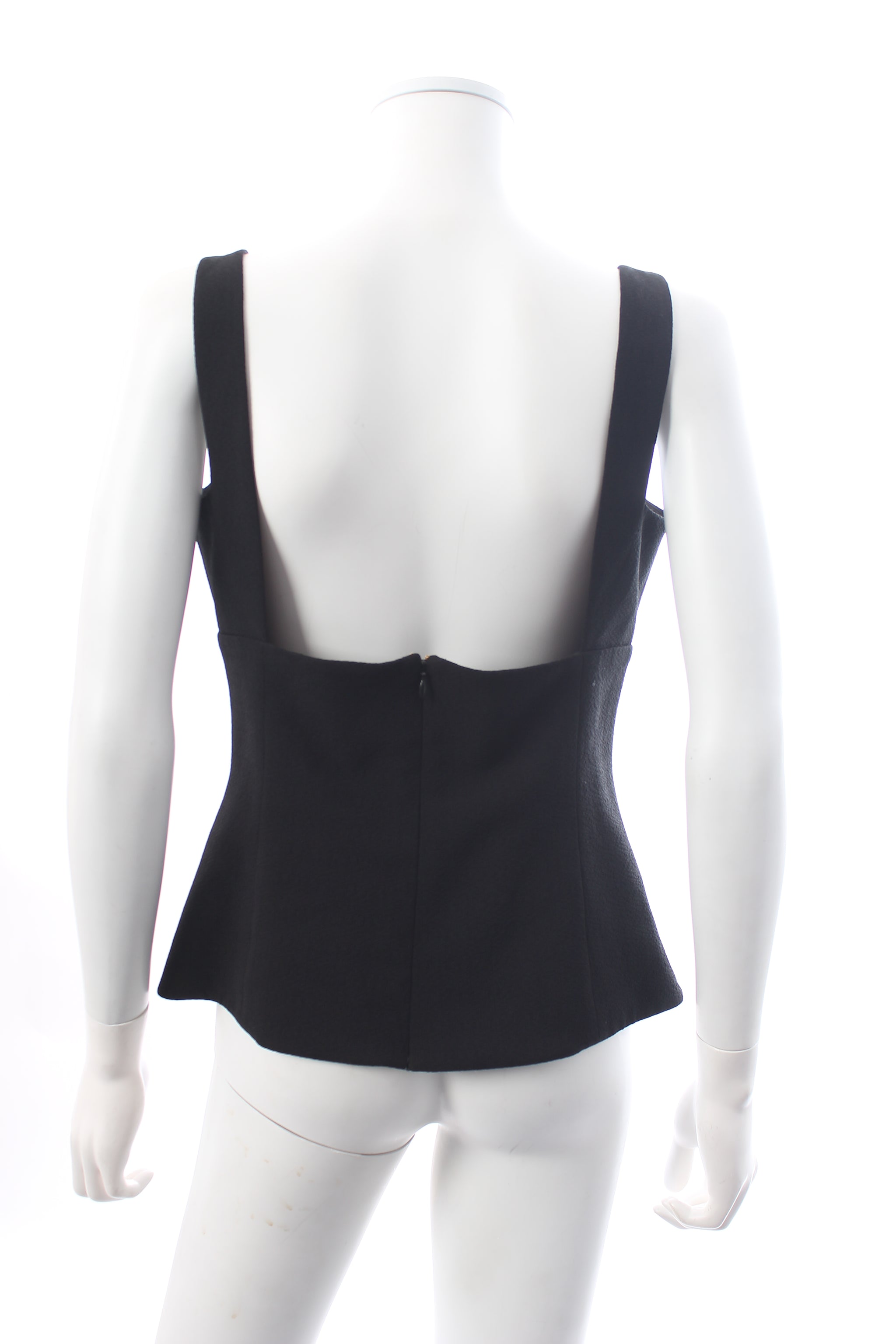 Textured crepe top with shoulder straps and curved neckline. Zip through the back. Lined