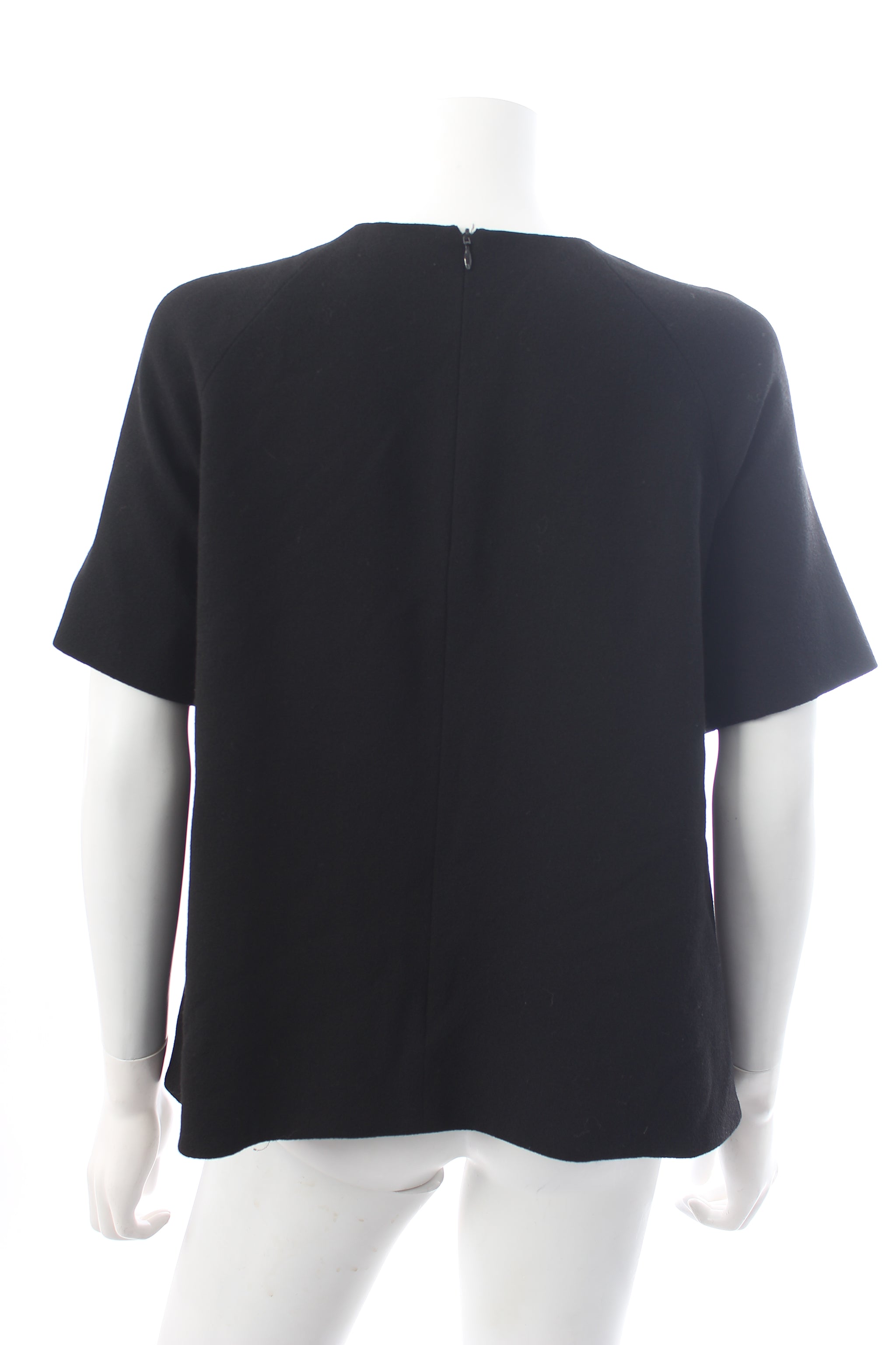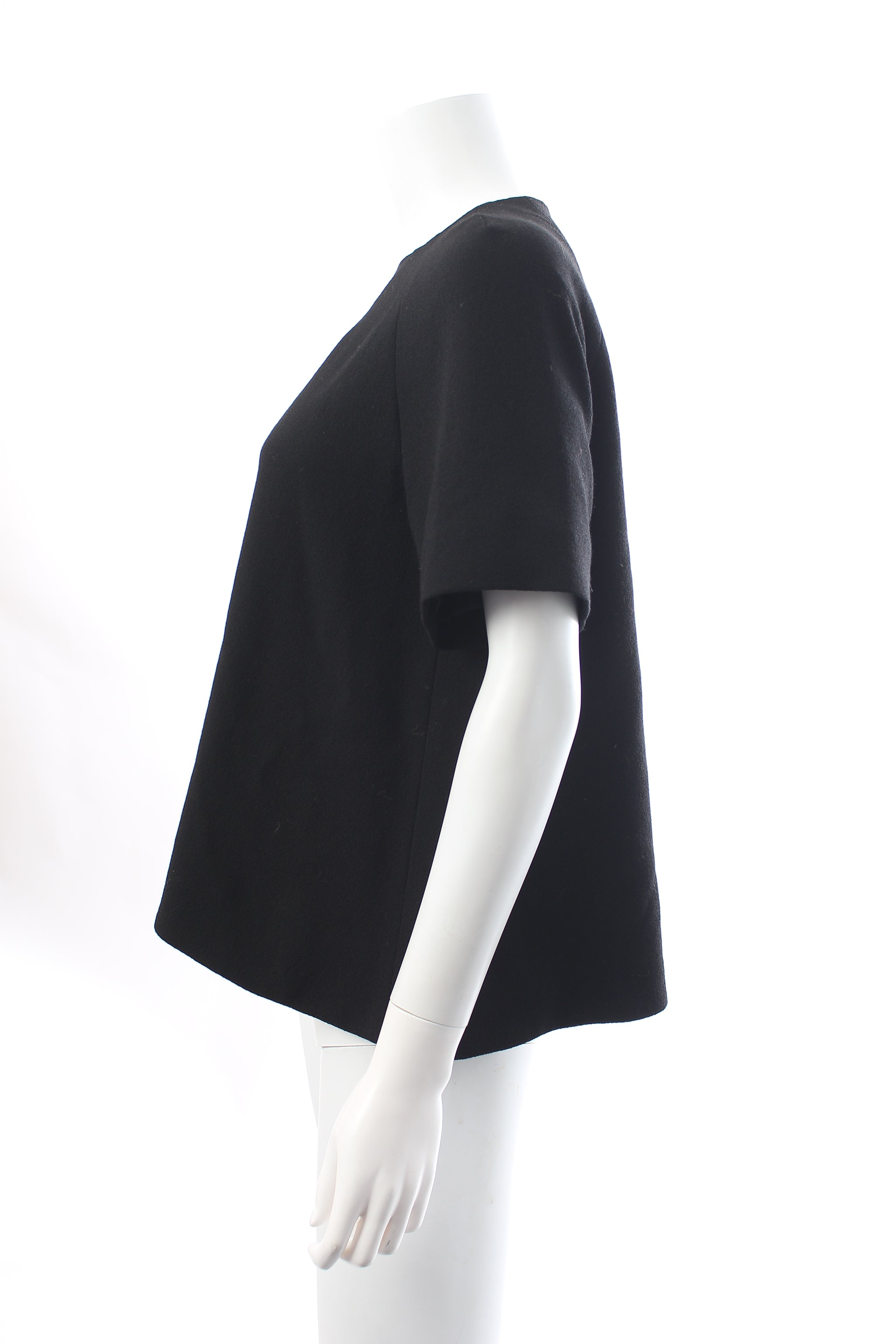 Short sleeved wool crepe top with a flattering cut, round neck, zip fastening through the back and lining