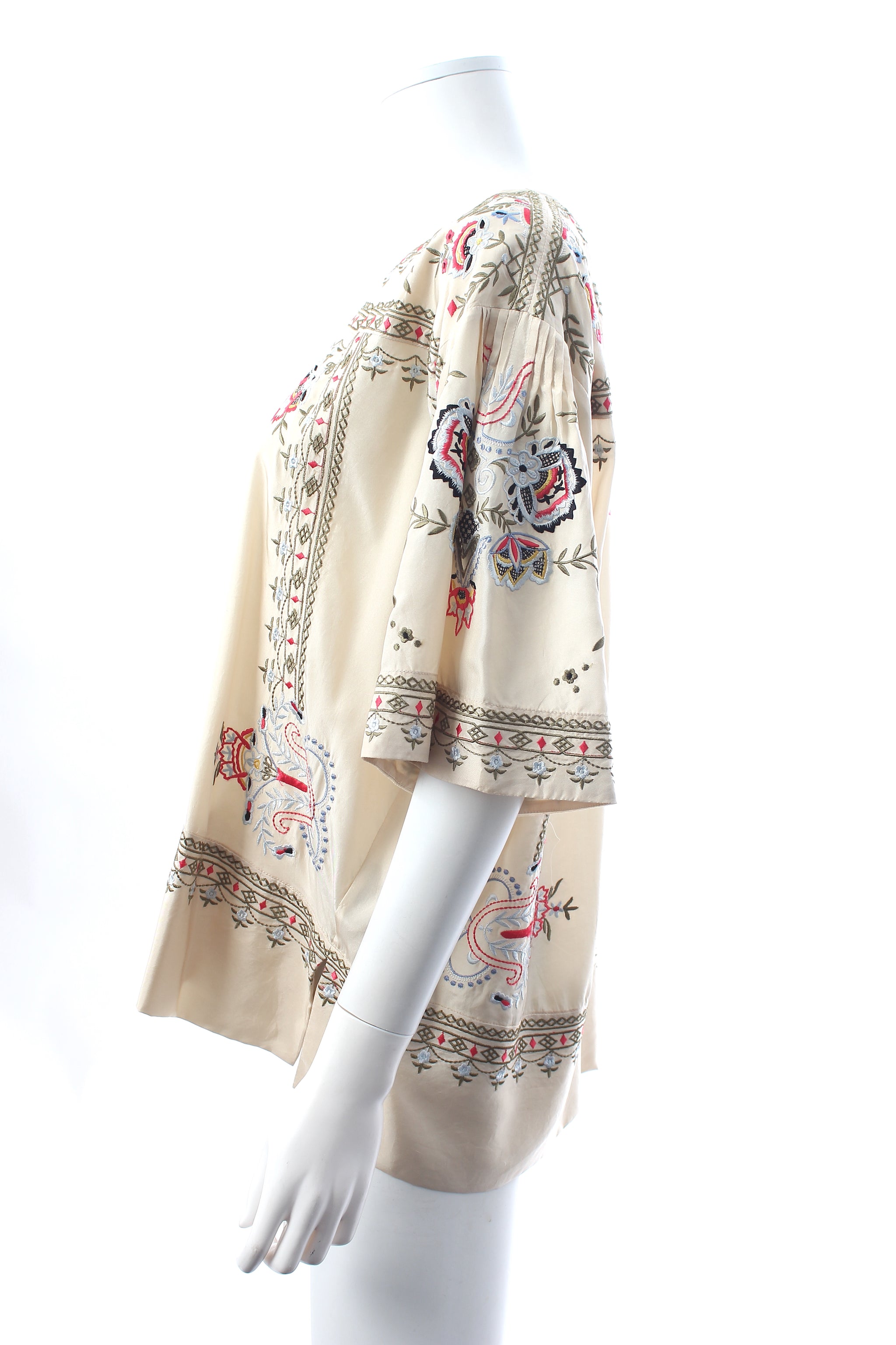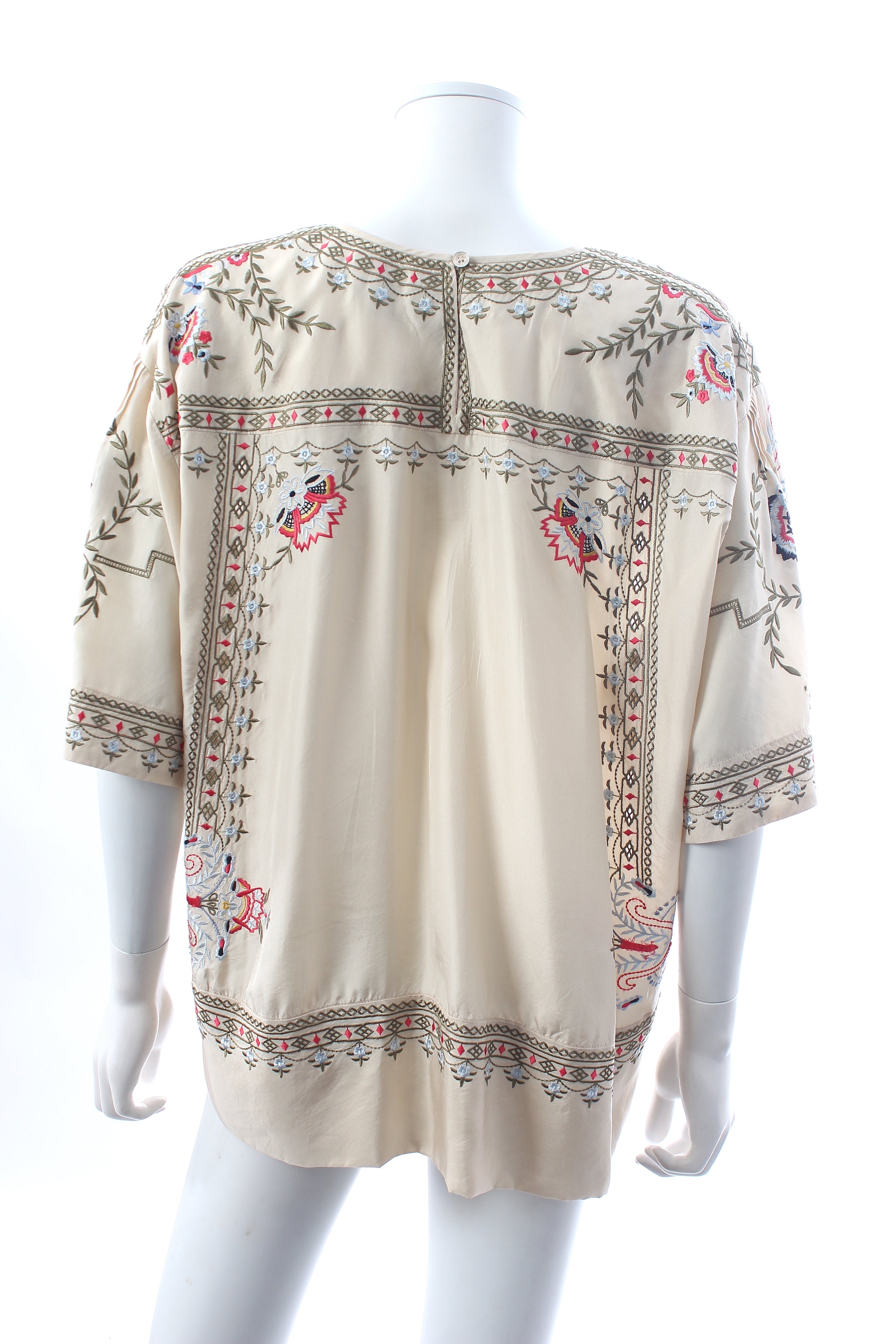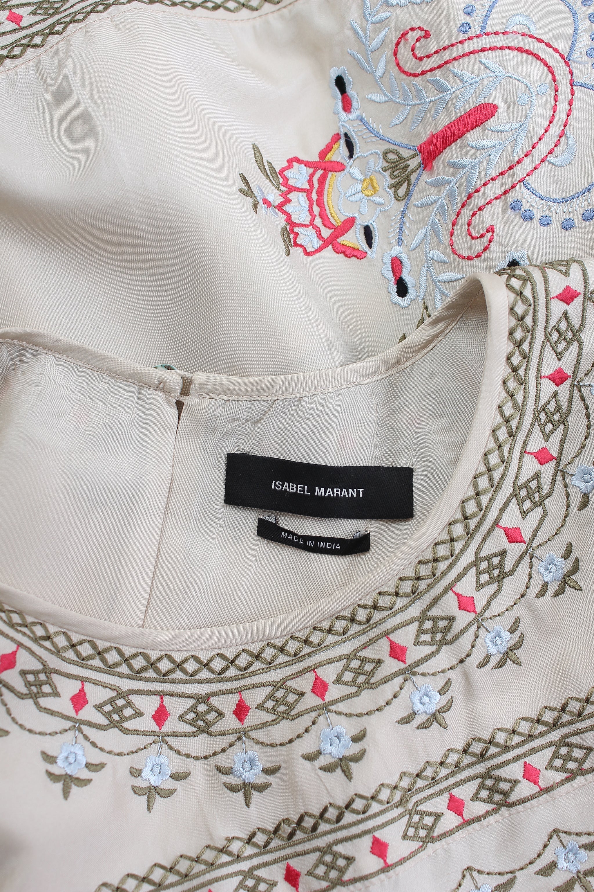 Silk top from Isabel Marant with floral embroidery, short sleeves, round neck, relaxed fit and button fastening at the nape