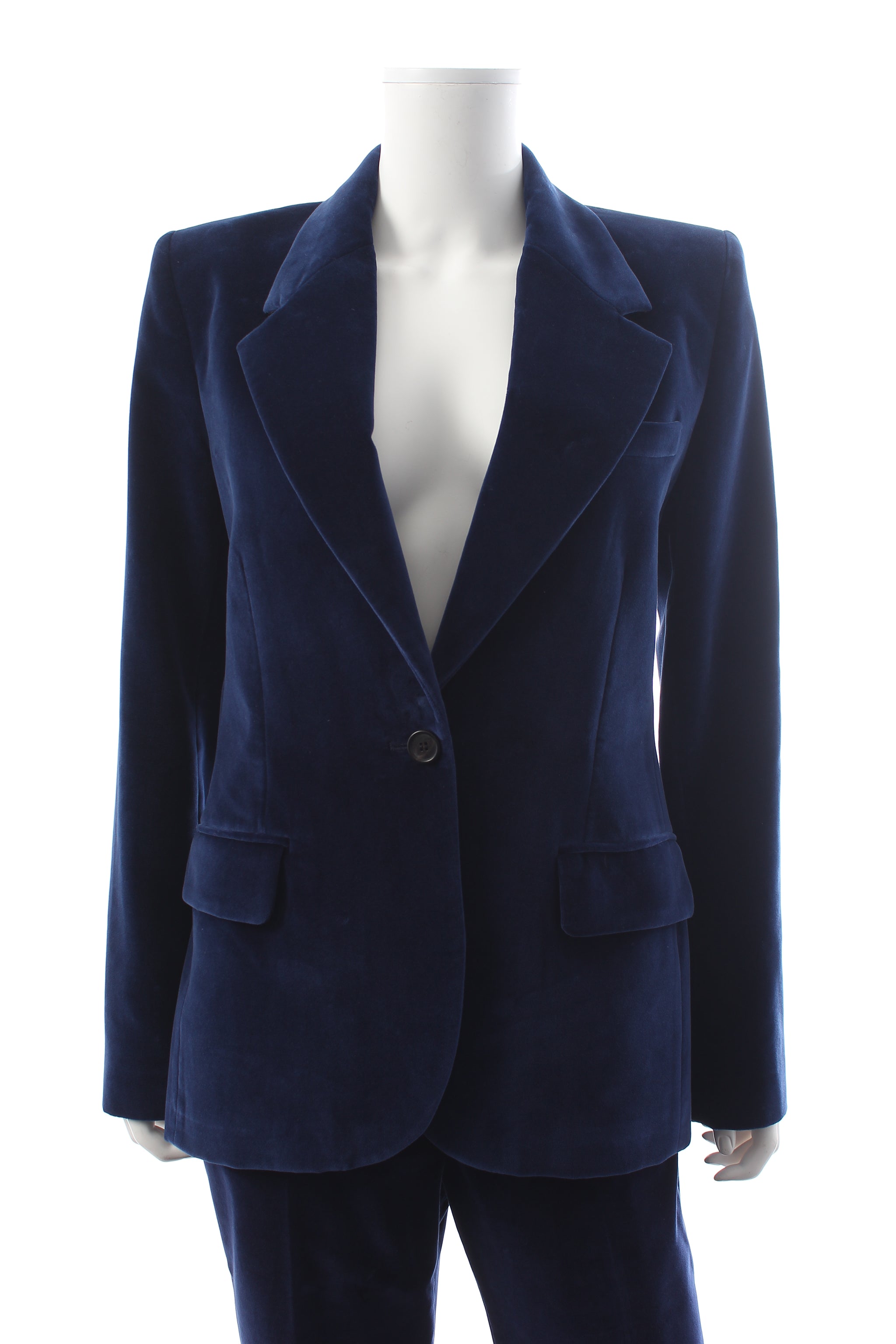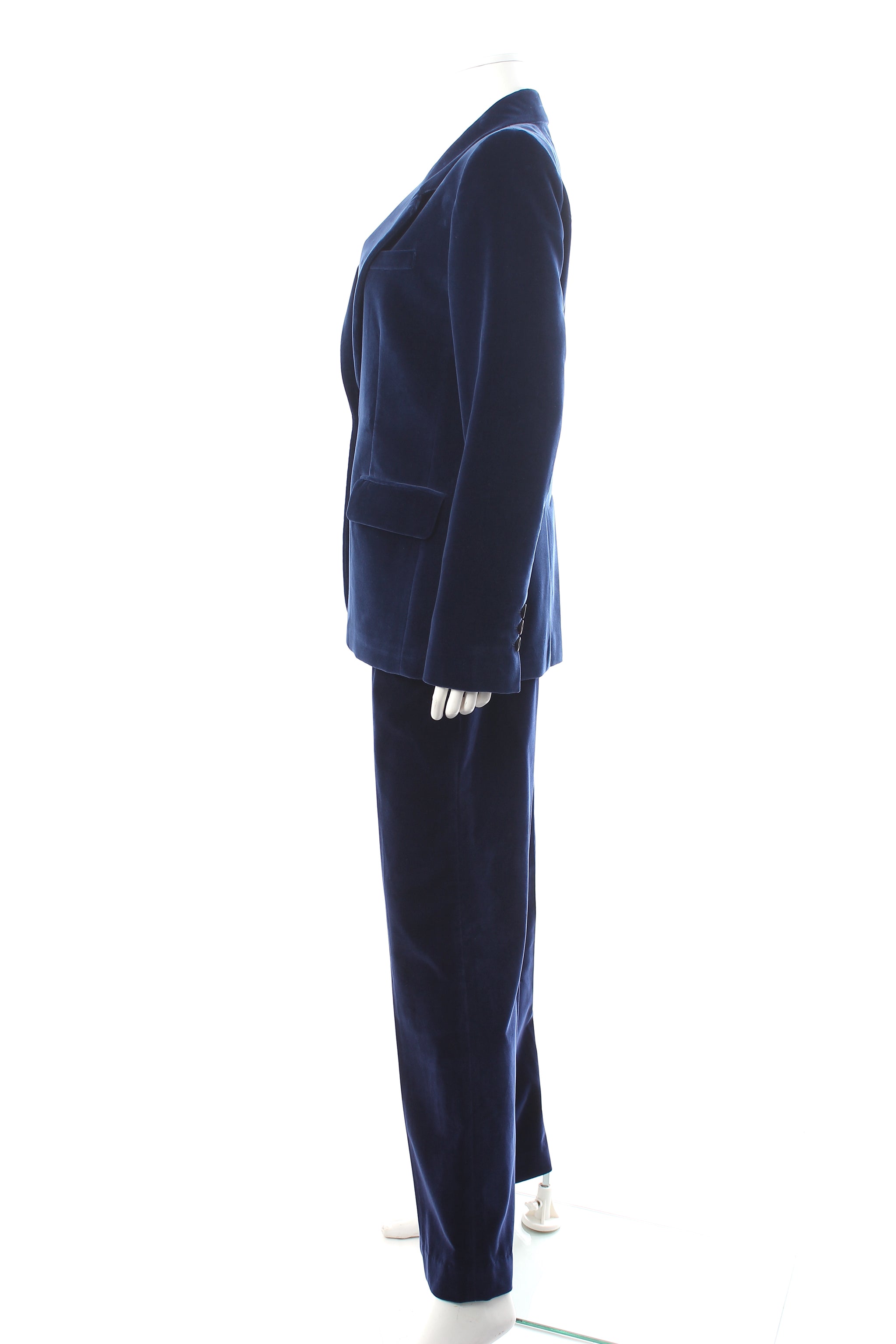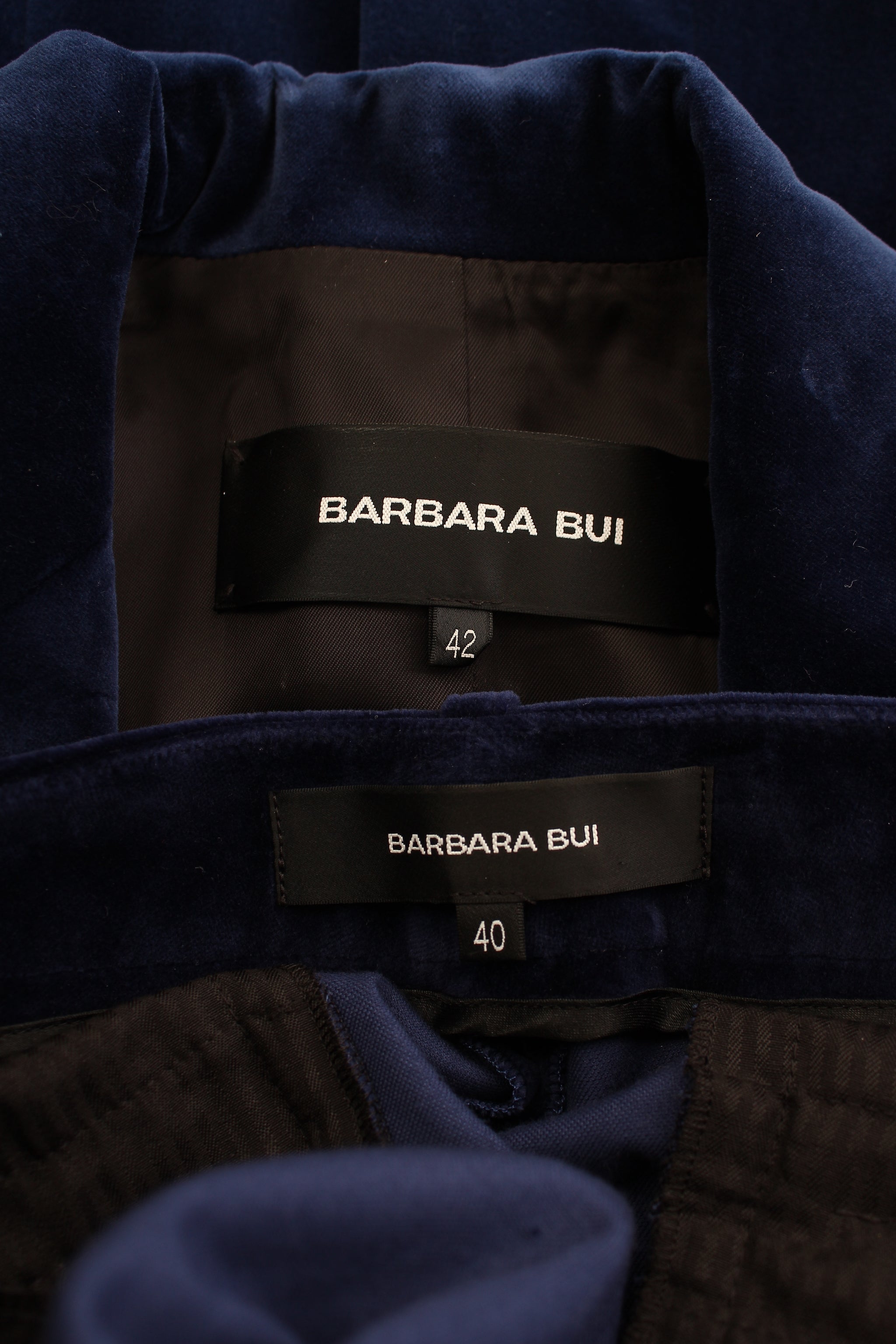 Classic velvet Barbara Bui two piece suit. Contrasting trim under the collar. Button fastening, flap pockets, lined. Wear together or separately to create different looks. Suit fits a size 12 UK. Trouser waist: 32 inches and leg 30.5 inches