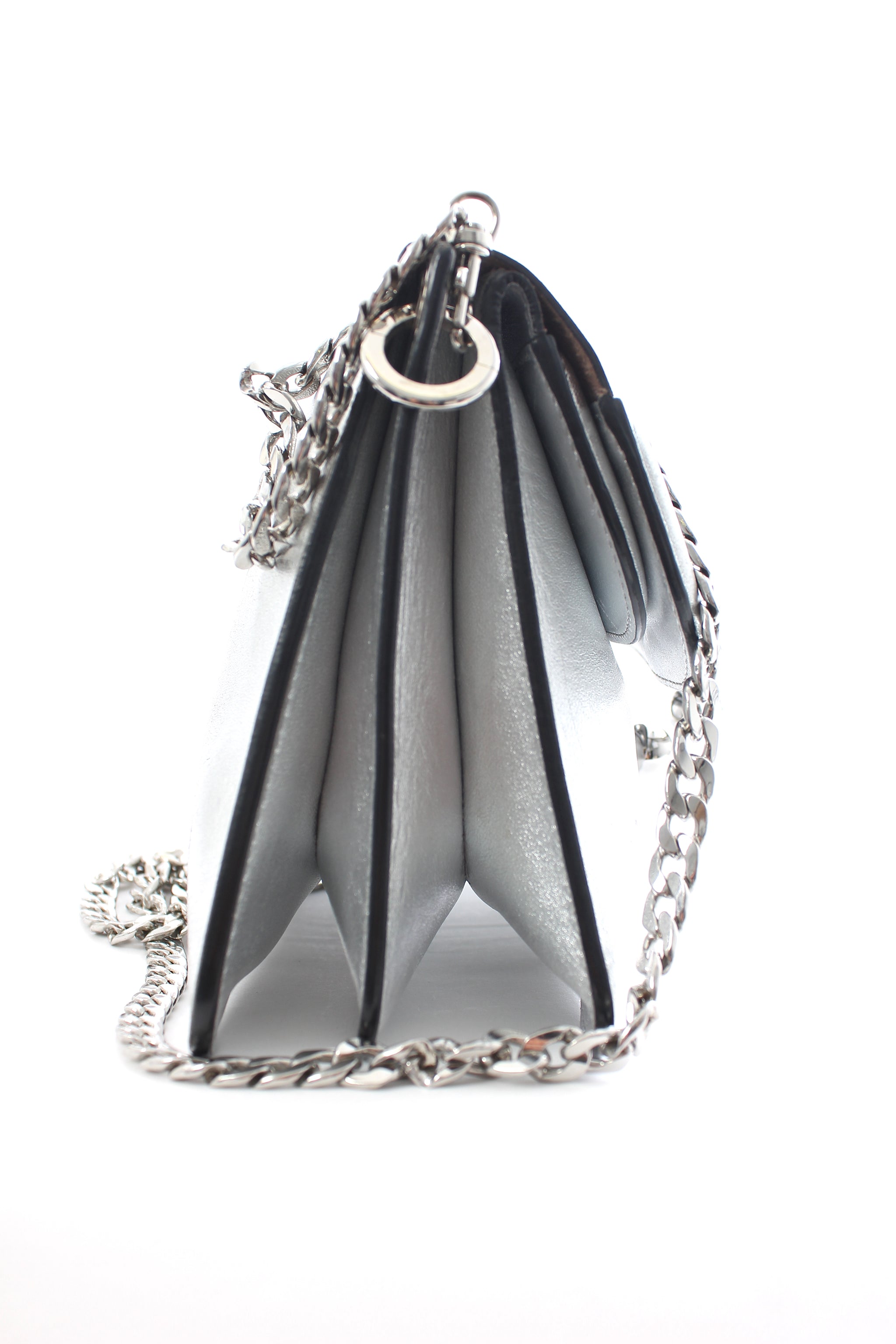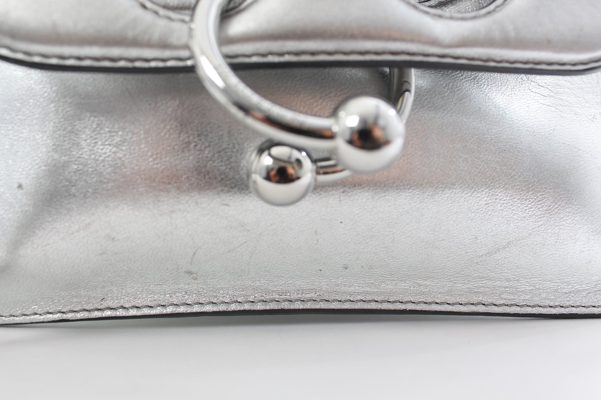 The Pierce Bag from JW Anderson in Metallic Leather. Detachable chain strap to wear crossbody or use as a clutch bag. Dust bag included