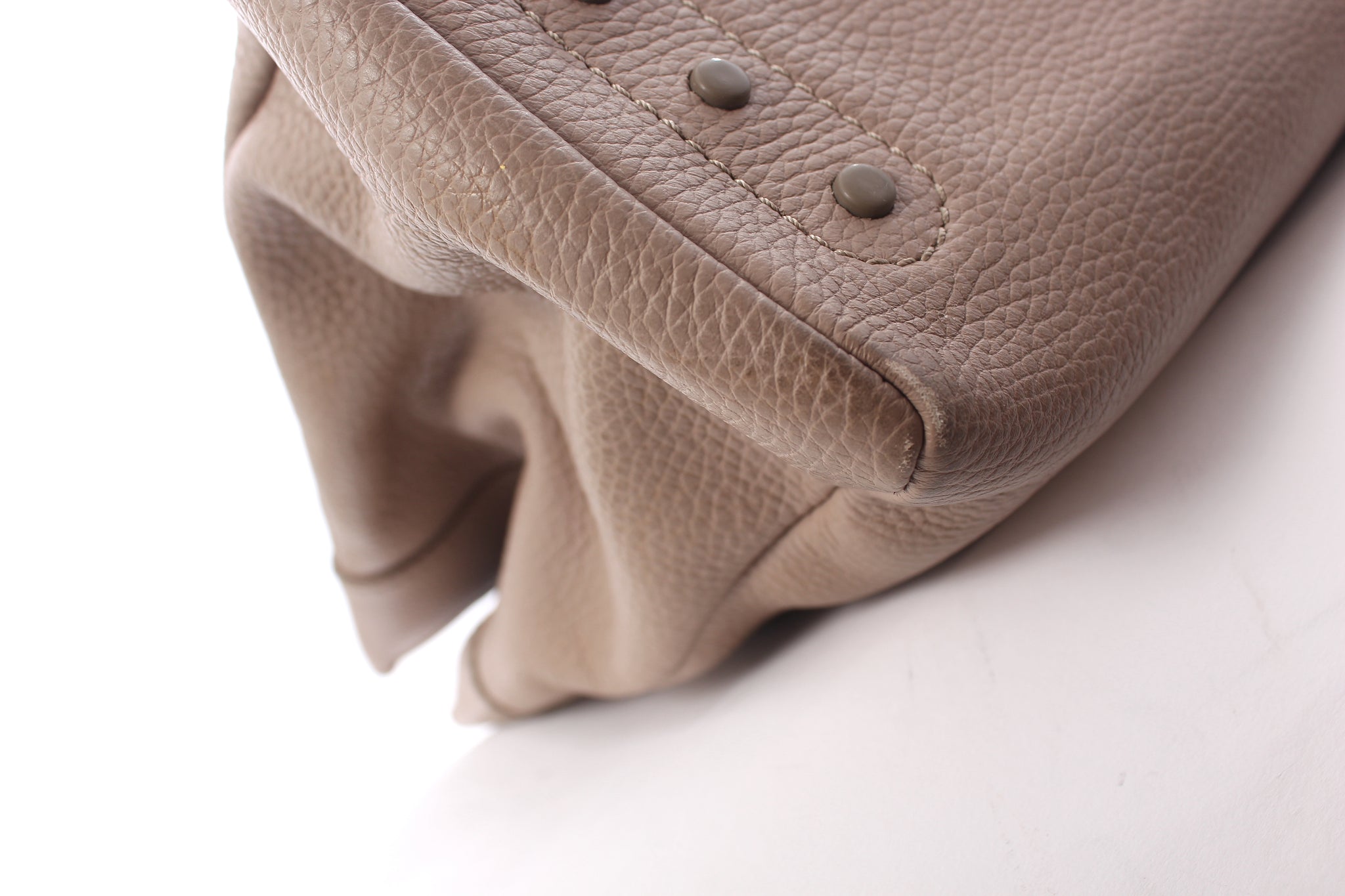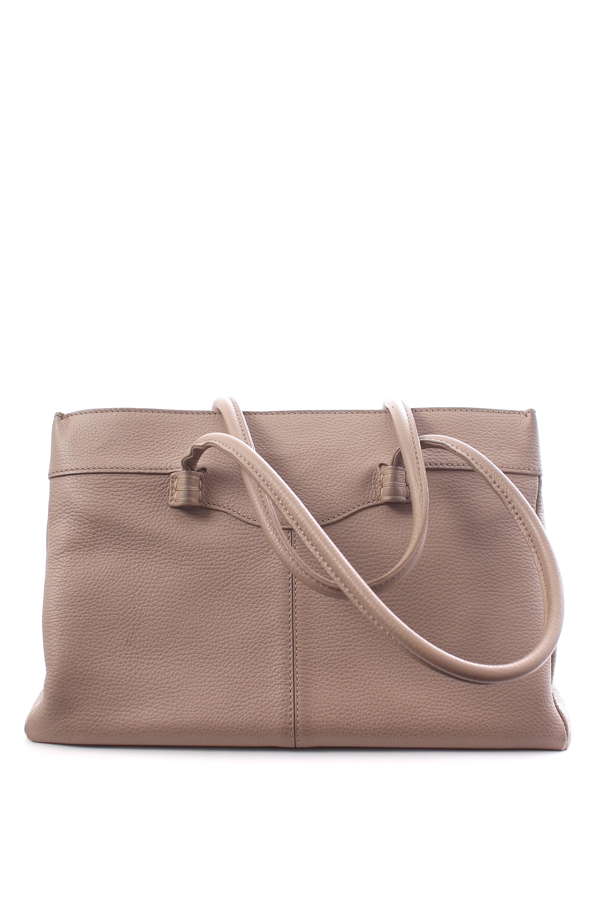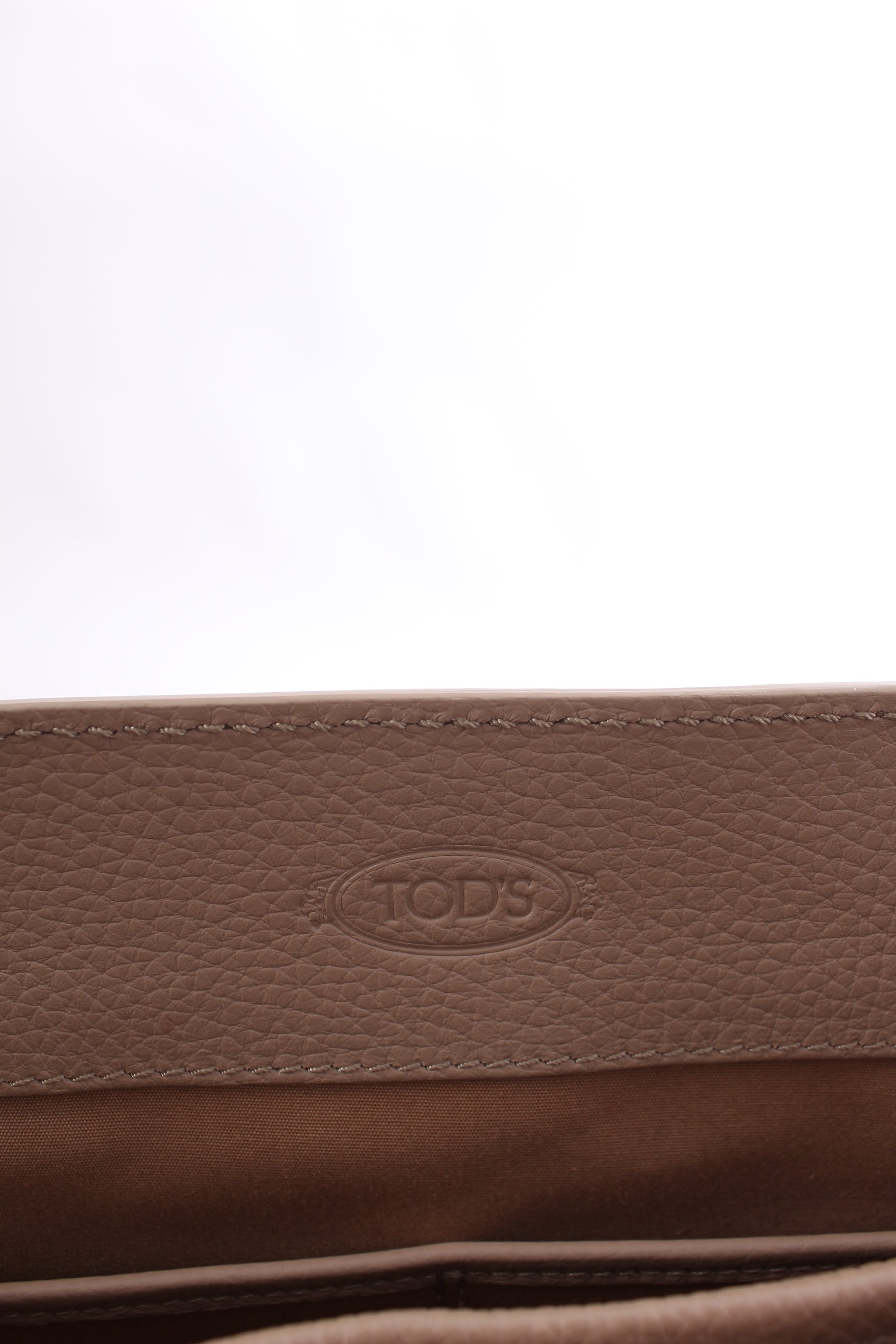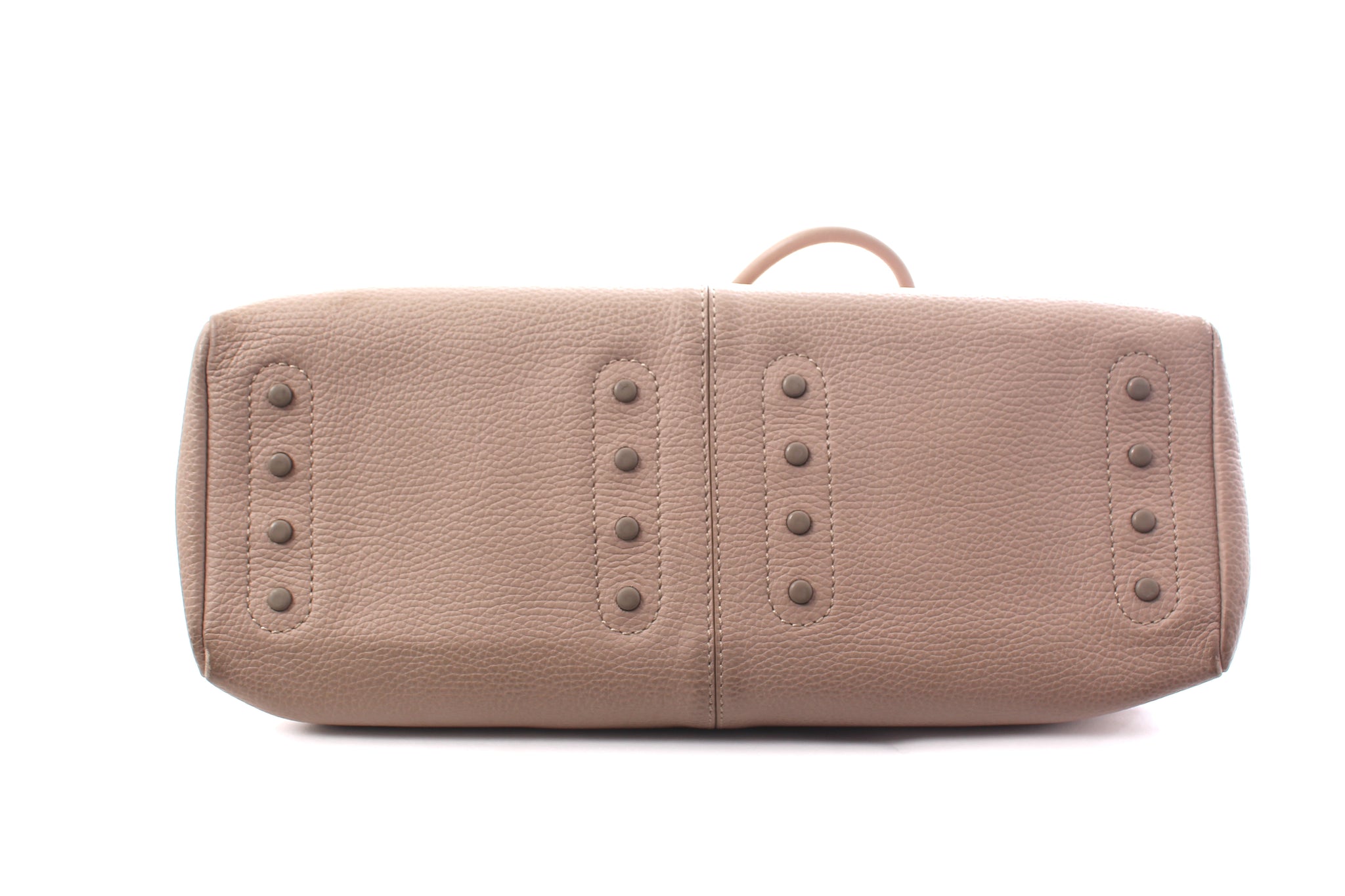 Tod's classic Mocassino tote bag with two shoulder straps, tonal stitching and signature studs at the base. Spacious lined interior with multiple compartments, slip pockets and zippered pocket. Measures: 14.5" W x 9.5" H x 5" D. Dust bag included