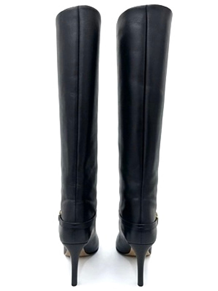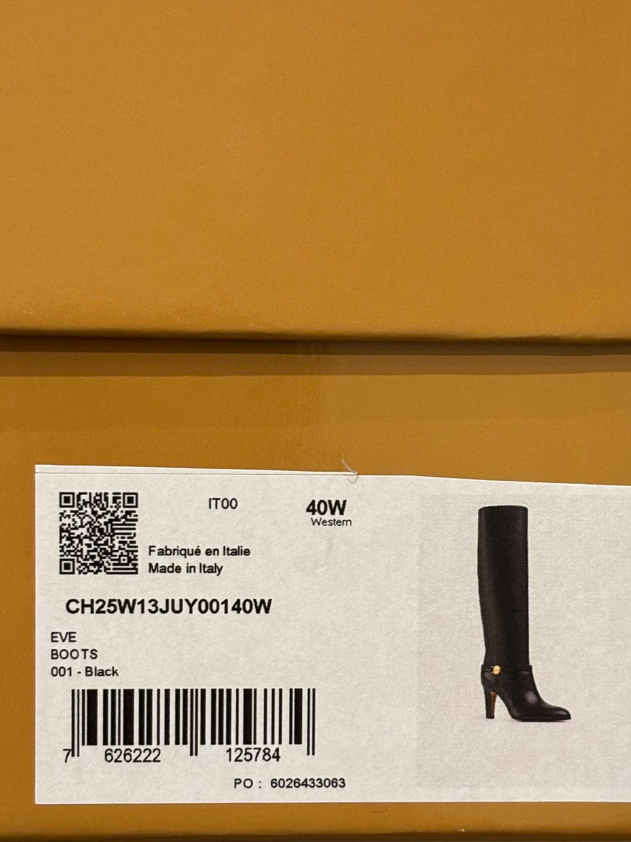 Current season Chloe Eve knee high boots. Detailed with a signature gold-tone 'Horse Medal' hardware. Crafted from supple leather and rest on 85mm tapered heels. Box and dust bags included. Worn once only so the only sign of wear is on the outer sole