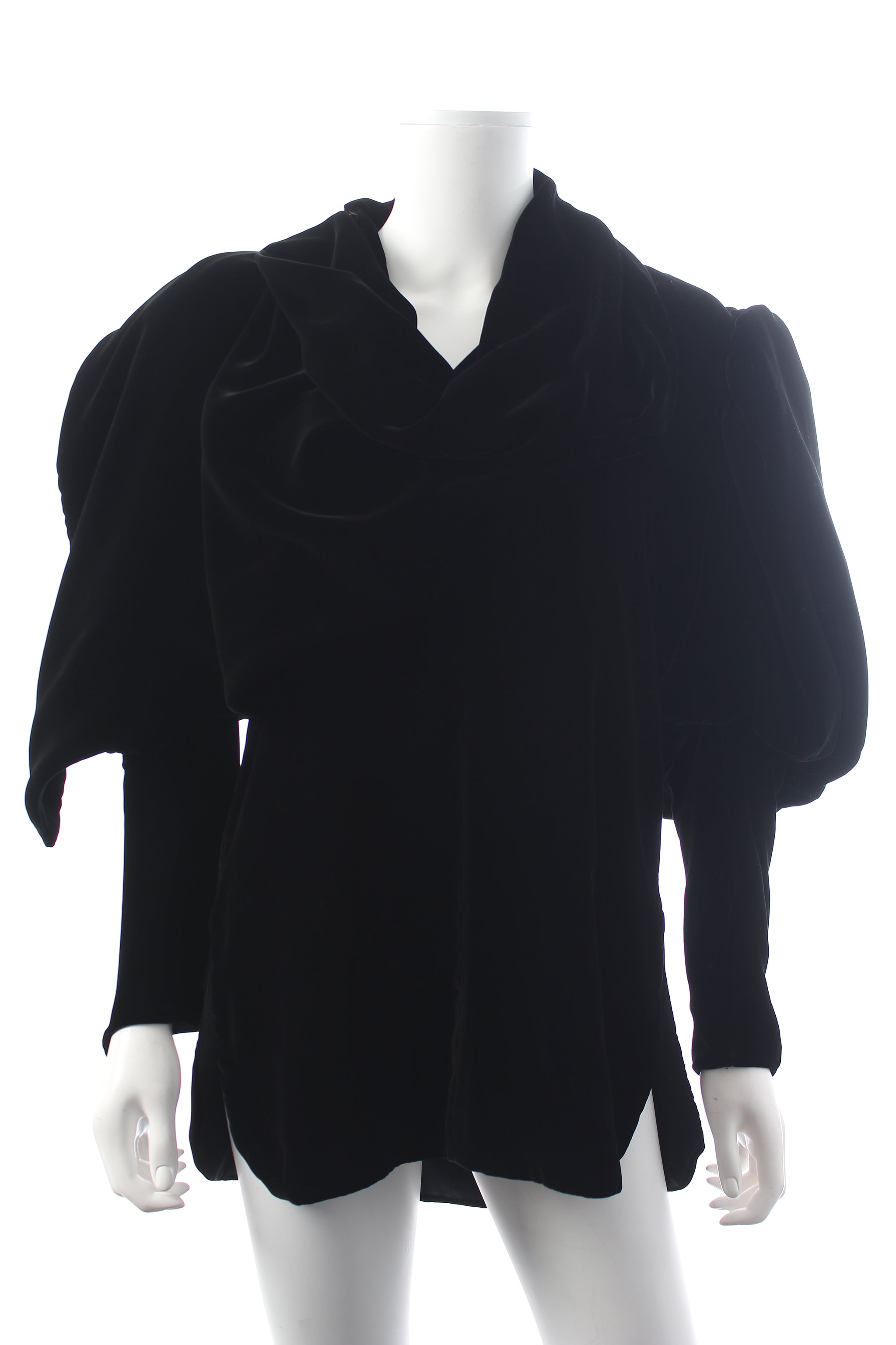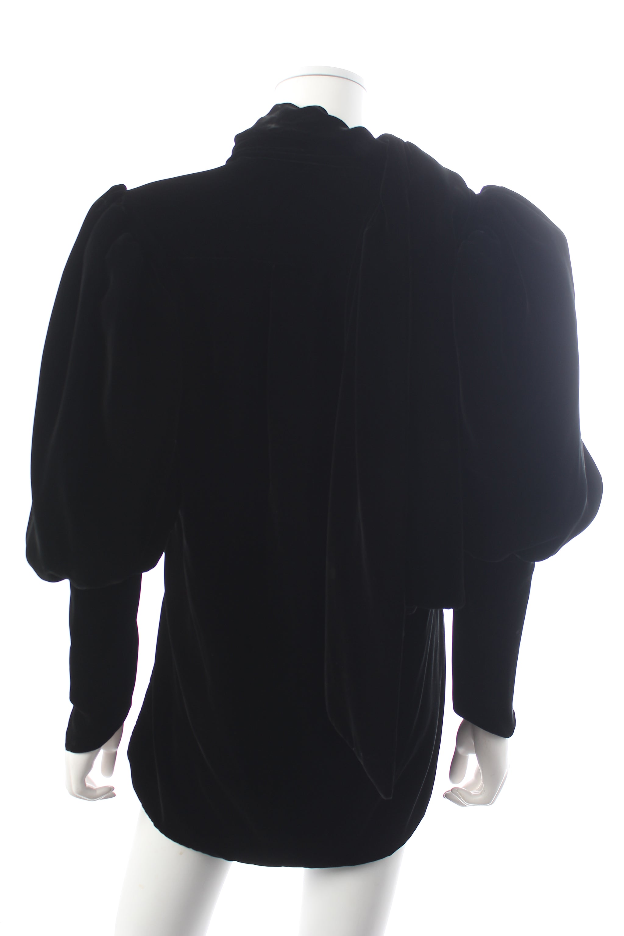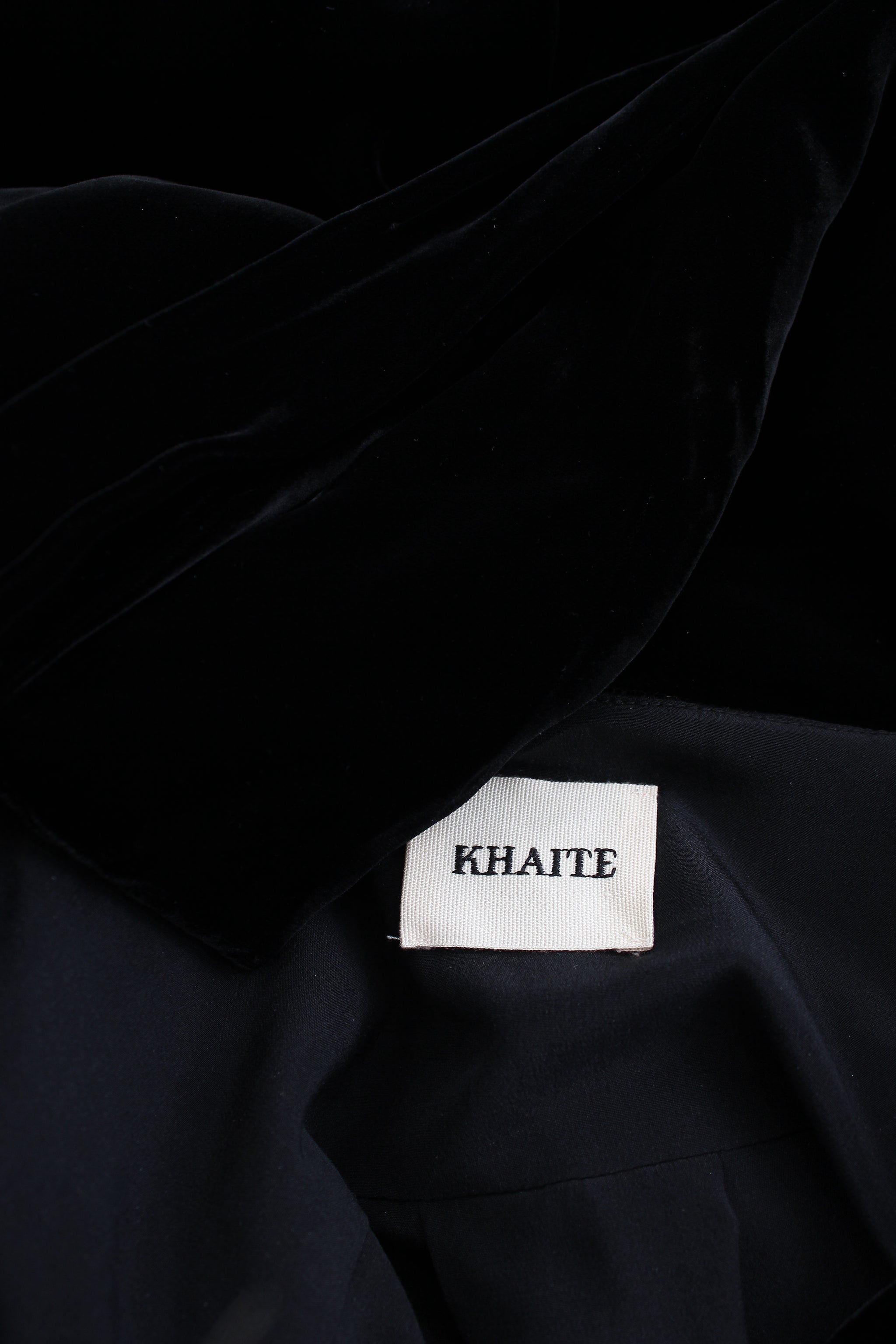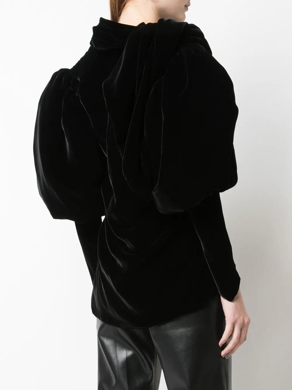 The Jones top from KHAITE is made from luxe velvet and features a plunging neck, side slits, gigot sleeves and a scarf like neck tie which can be draped around to create different looks