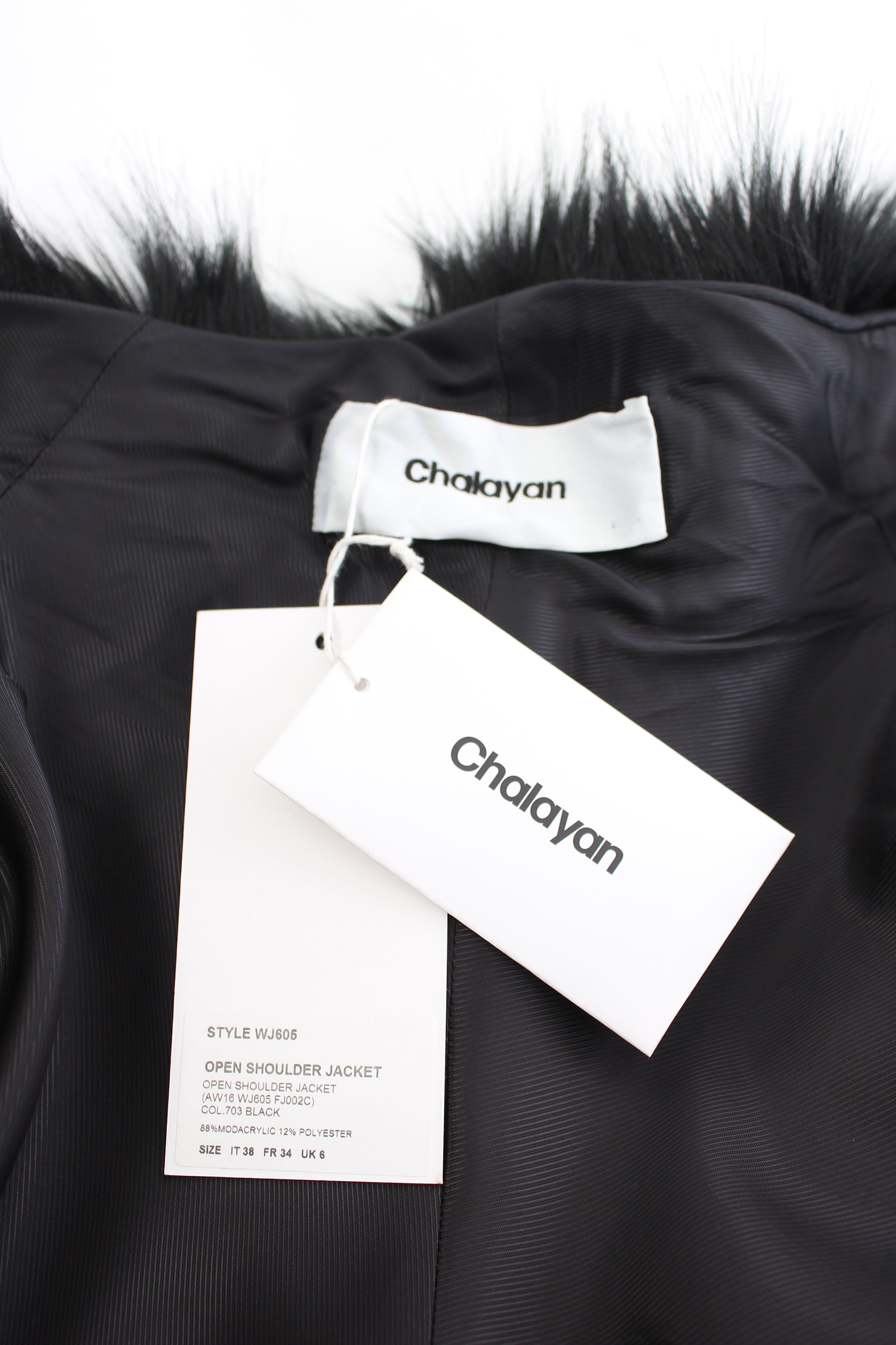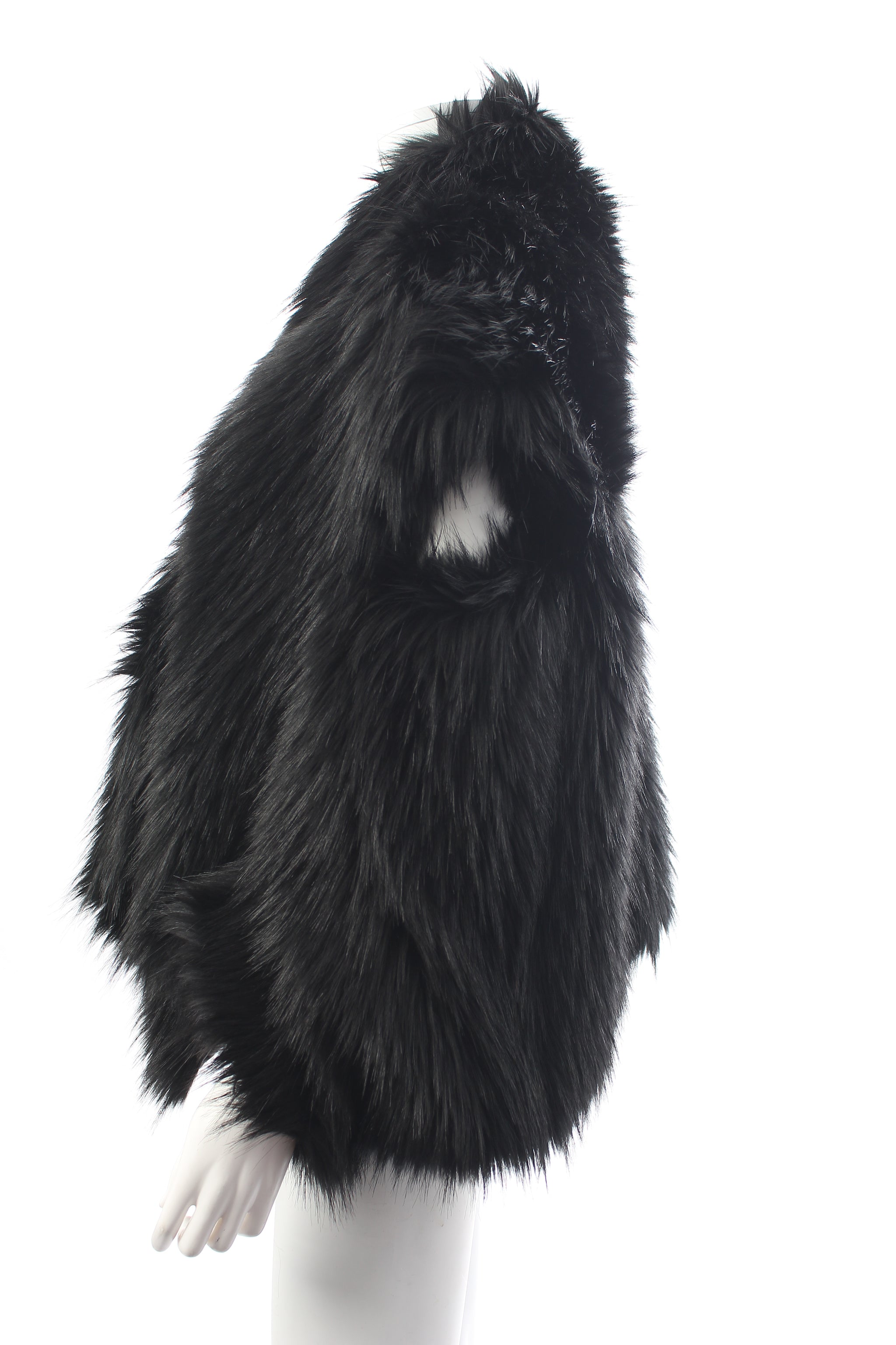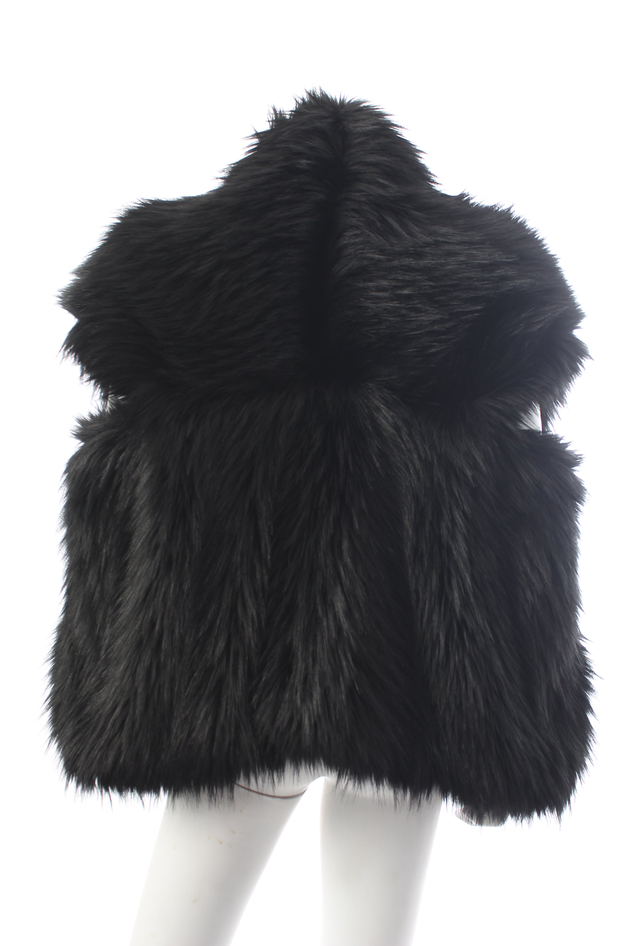 Faux fur jacket with cut detail at the sleeves and concealed fastening at the front. Lined