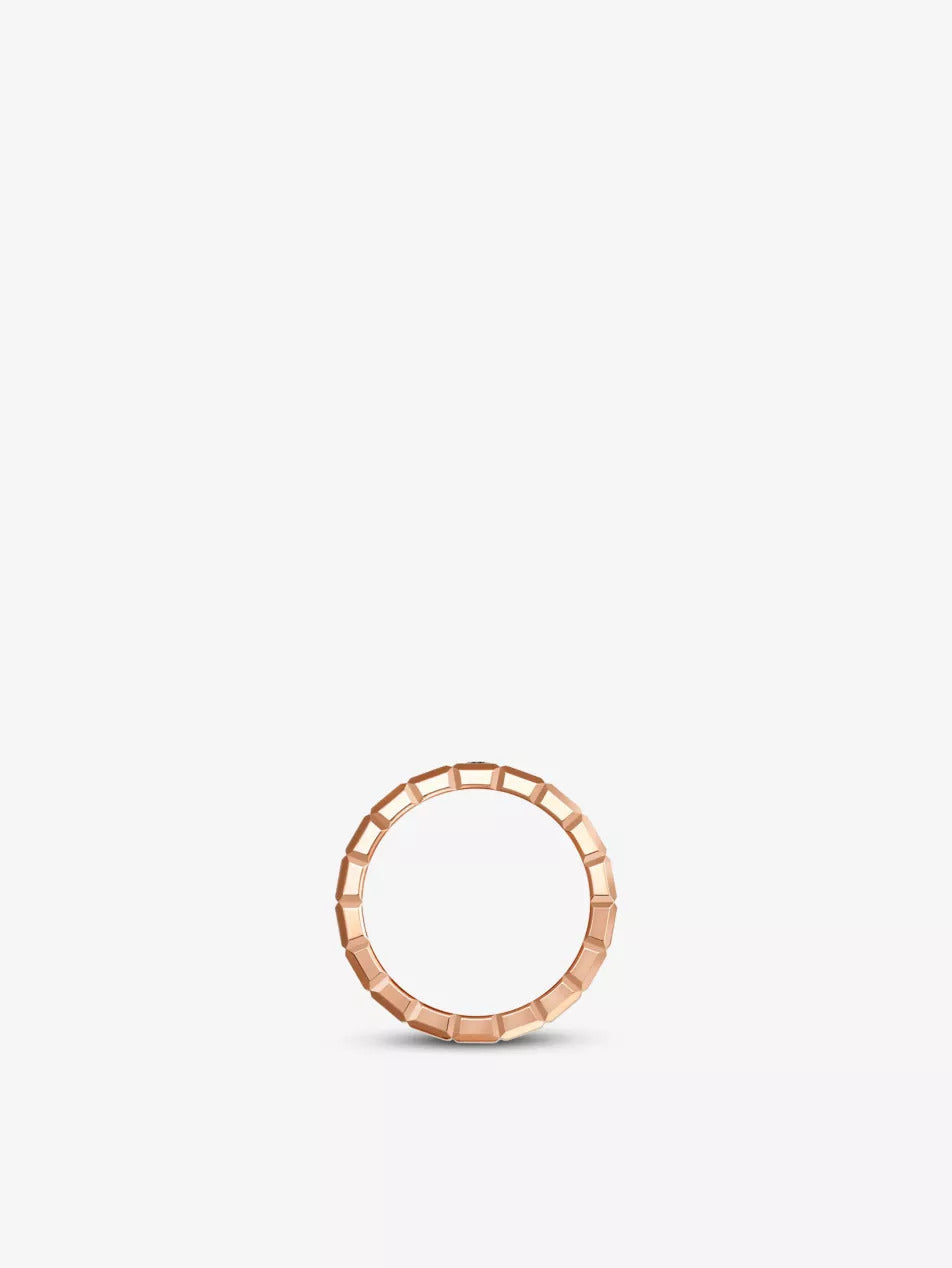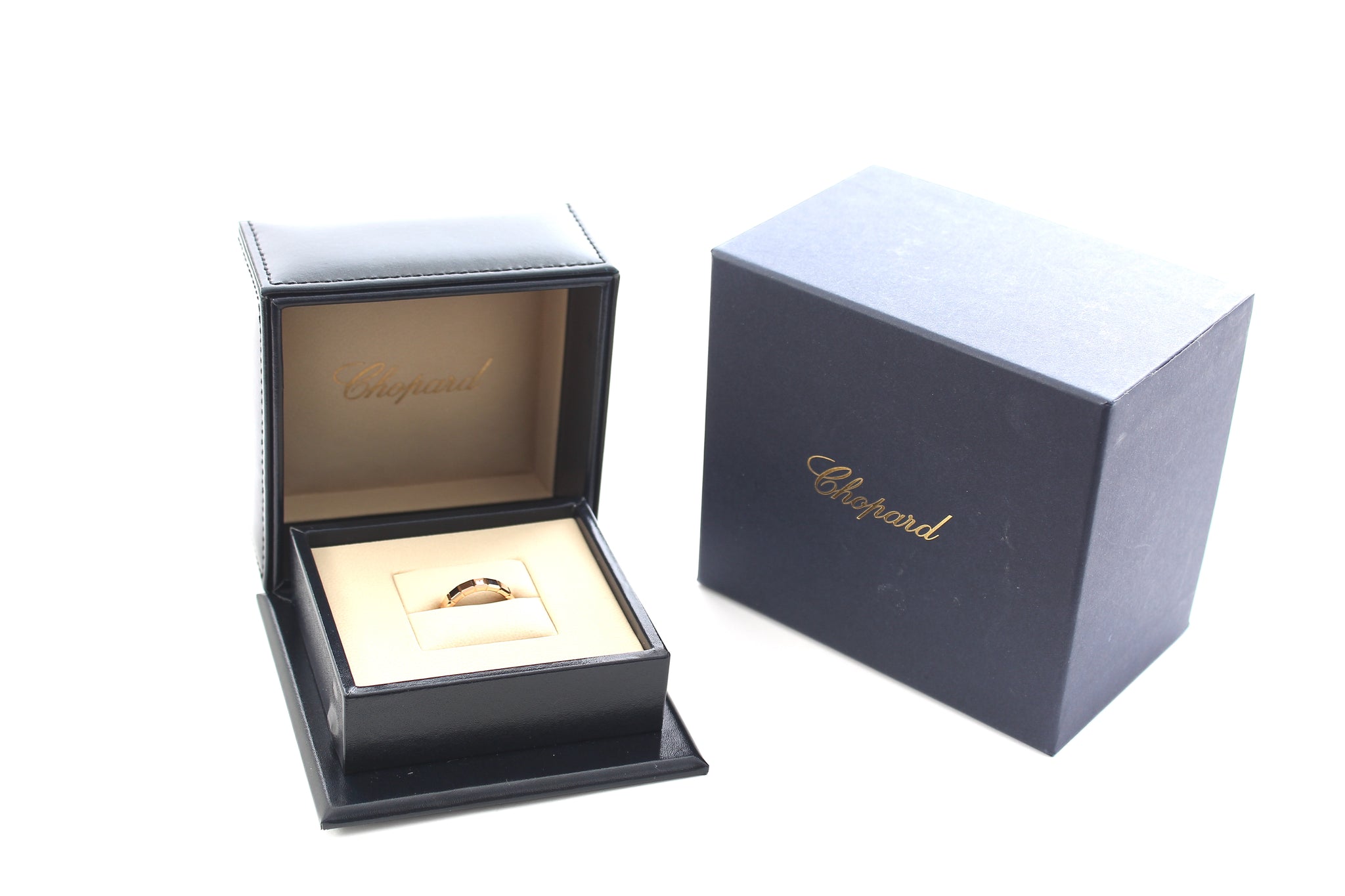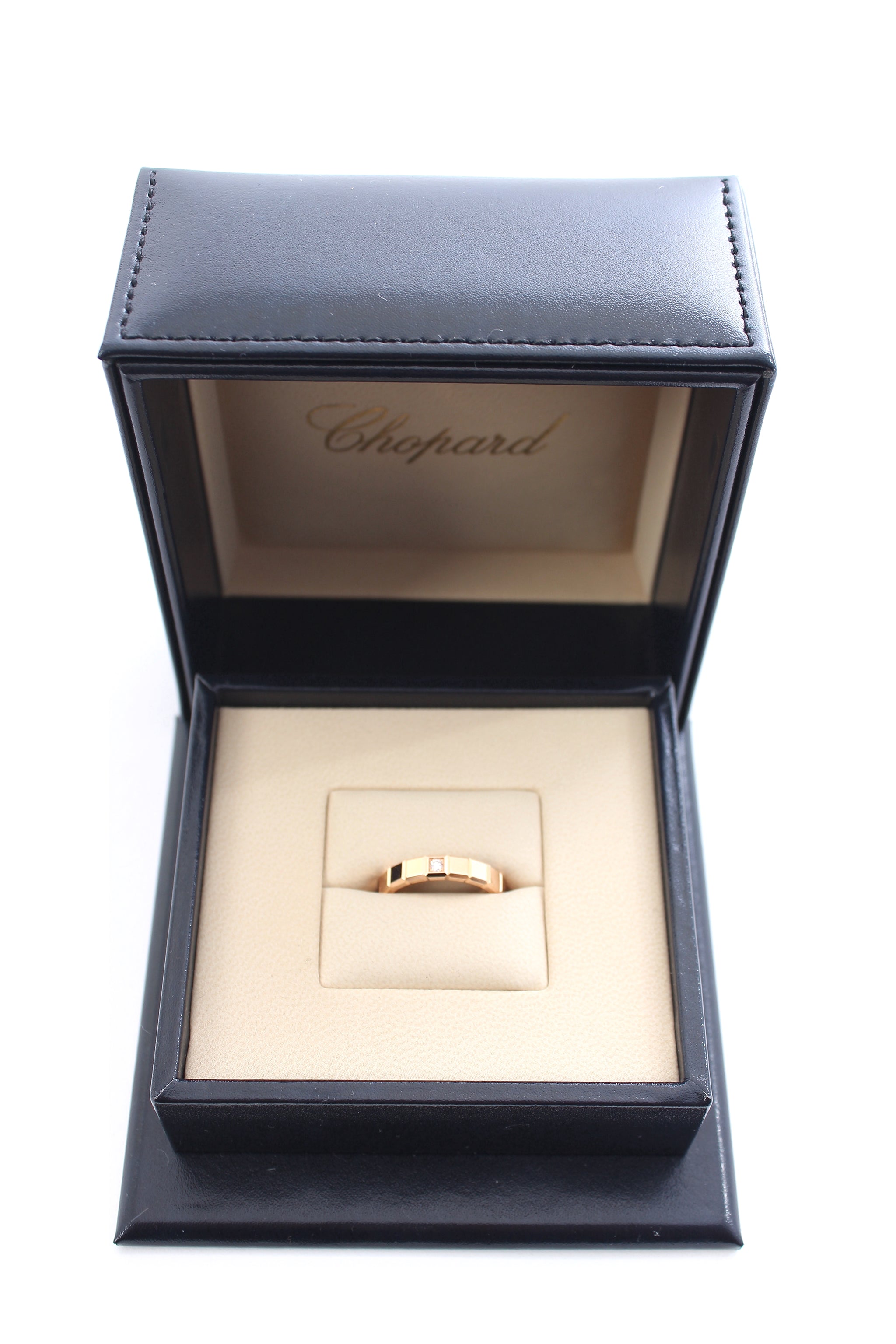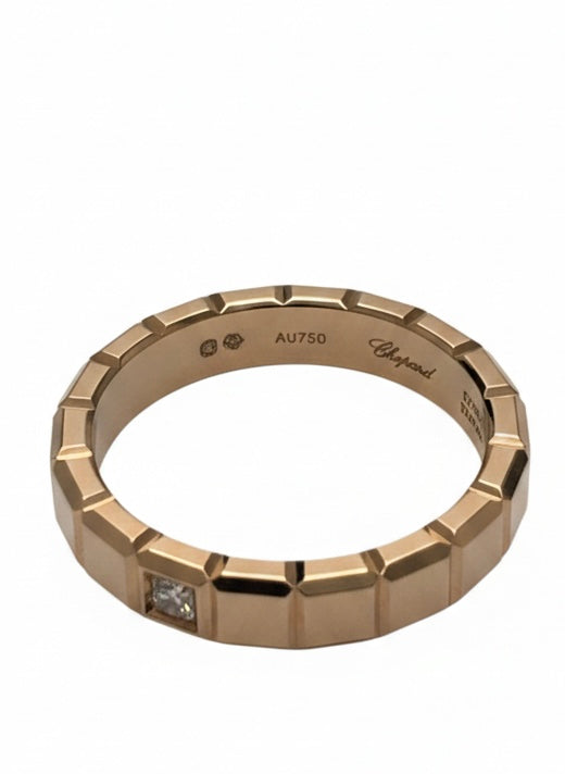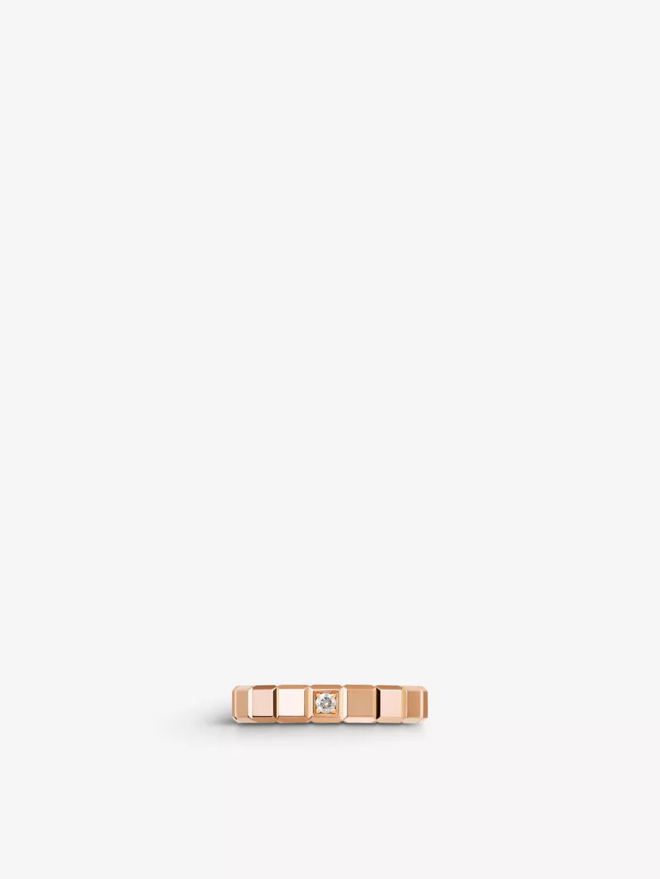 Chopard 18ct rose-gold and 0.03ct round-cut diamond ring - made from 18-carat fair-mined rose gold with one 0.03ct 1 diamond. Slips on. Ice cube design, solitaire diamond setting, logo engraving, polished finish. Carat weight: 0.03ct. Carat cut: round brilliant. Box included. Size 57. Diameter measures approx 17mm