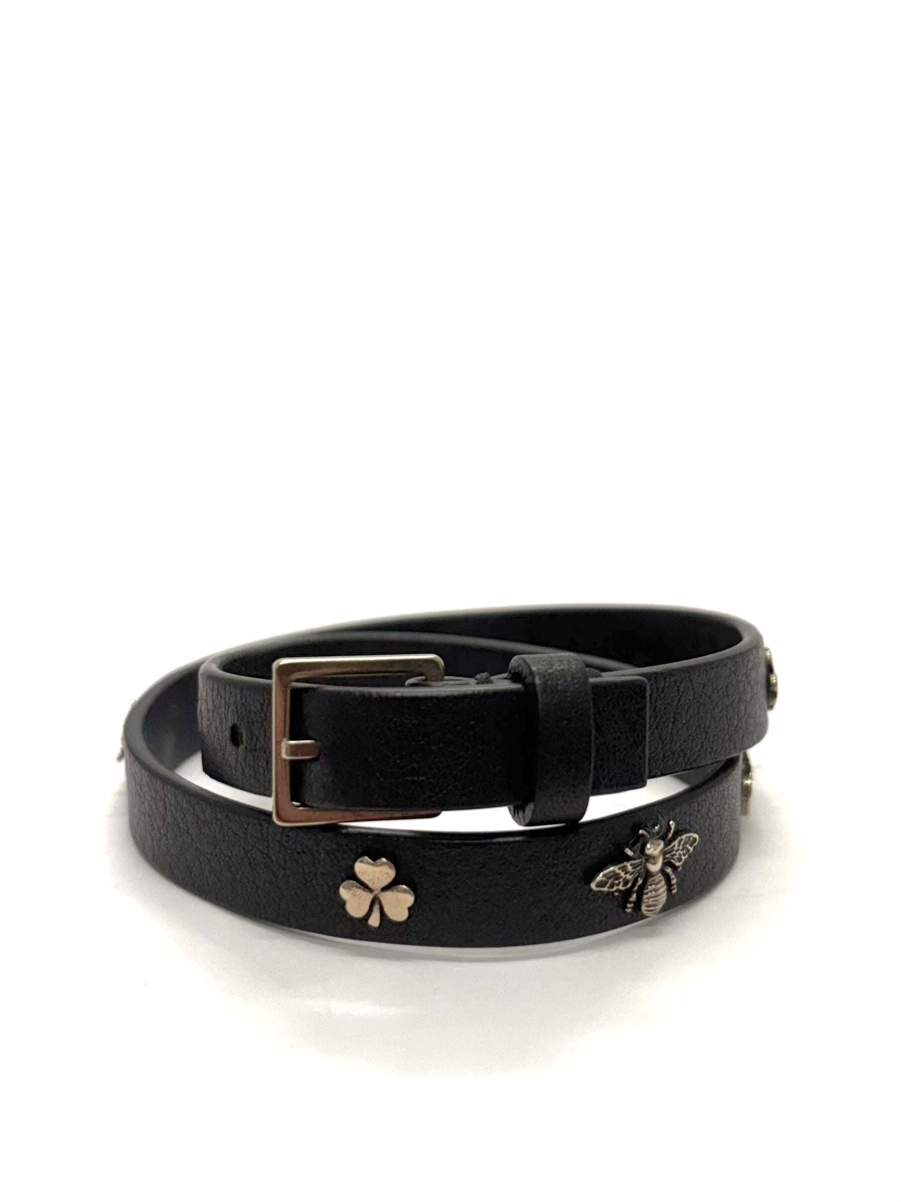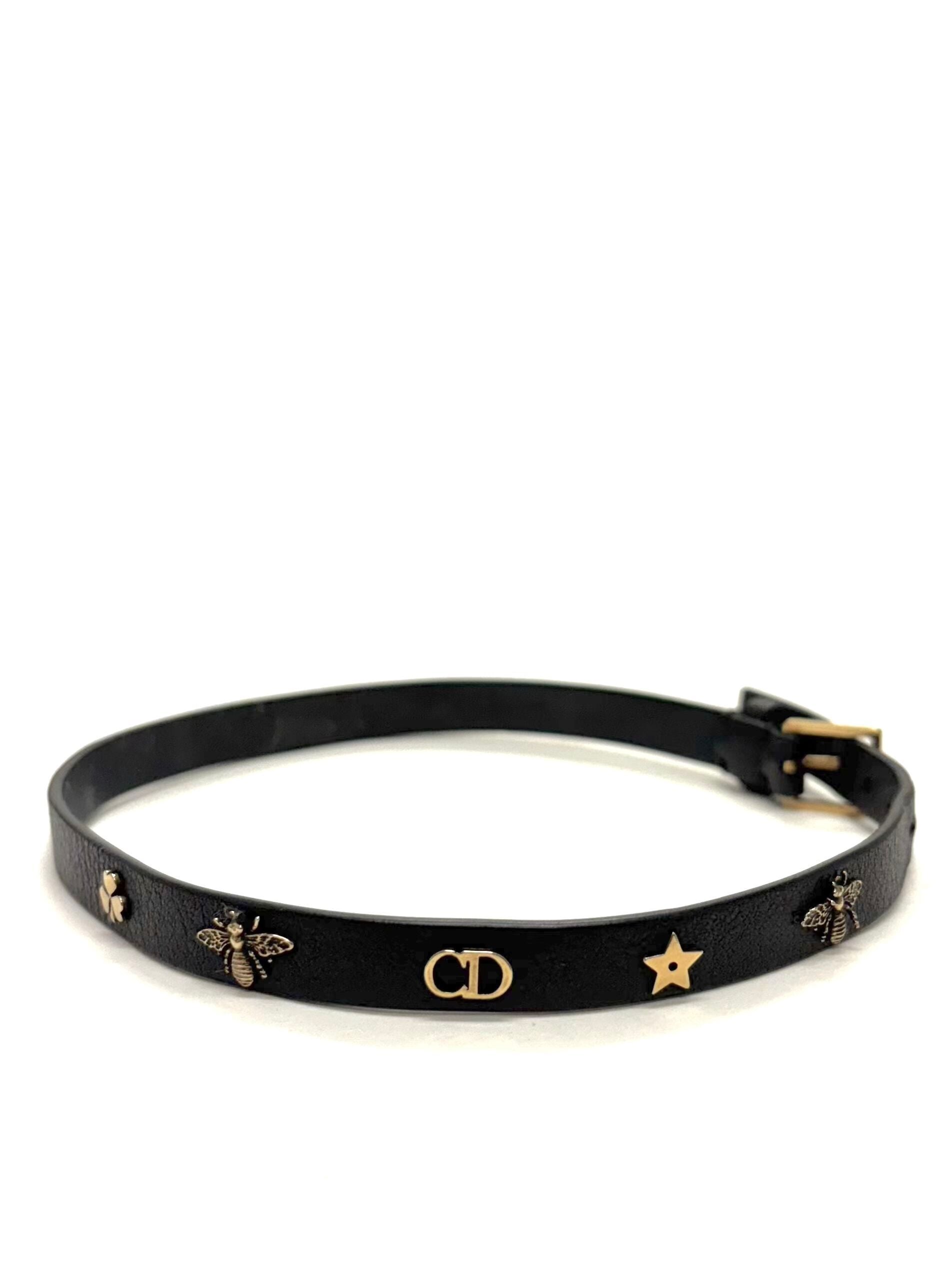 Dior leather bracelet embellished with signature Dior icons. It can be worn as a double wrap bracelet or as a single choker necklace. Holes at 33 cm (smallest) to 36 cm (largest). Dust bag not included
