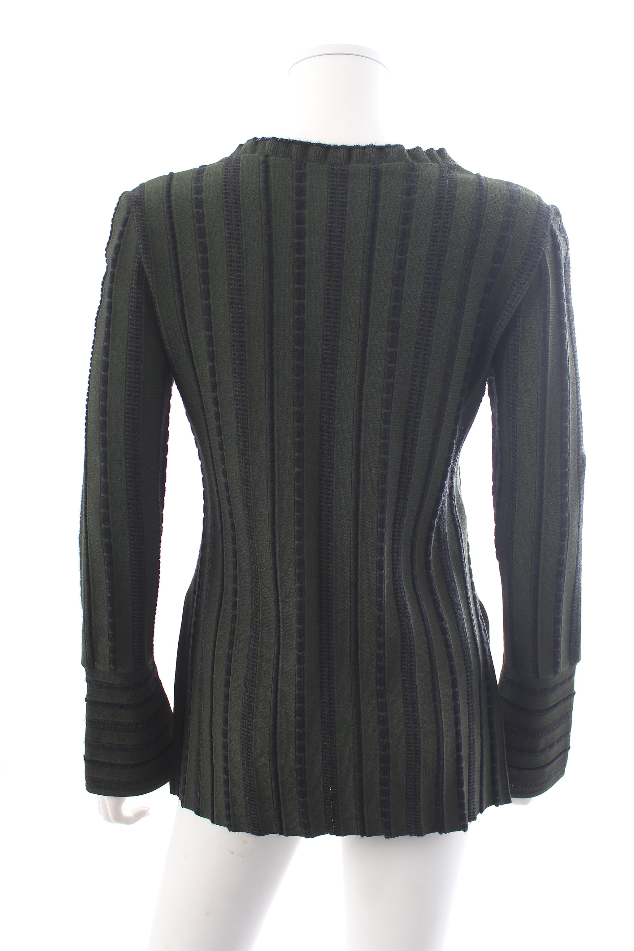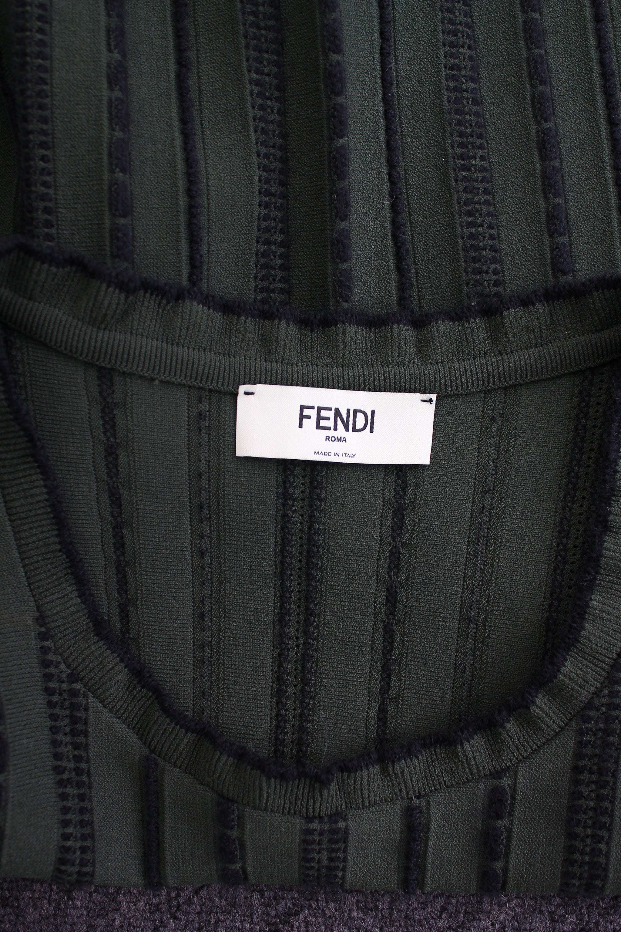 Fendi knit sweater with embroidery stitching detail throughout. Rib knit trim. Slit detail.
