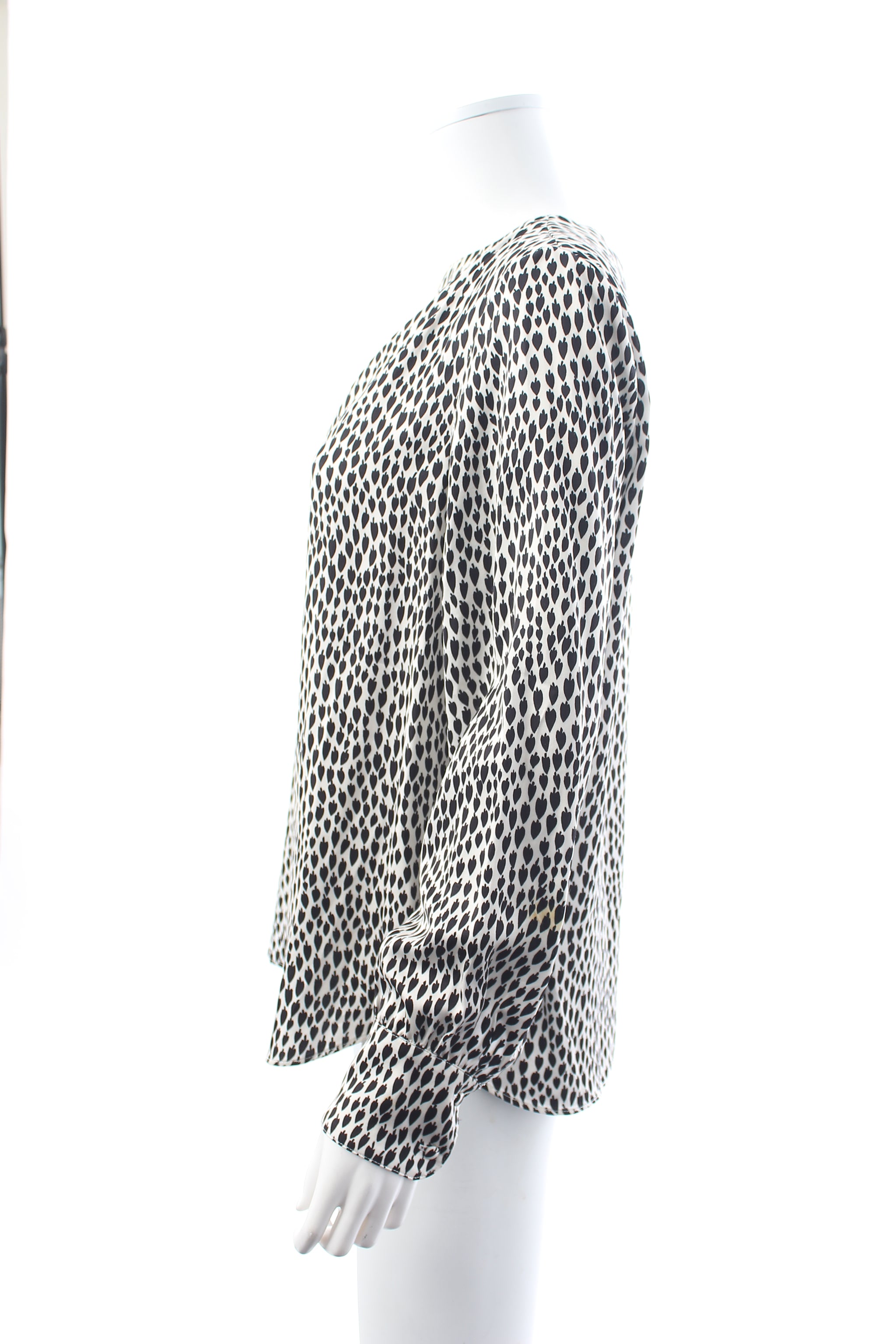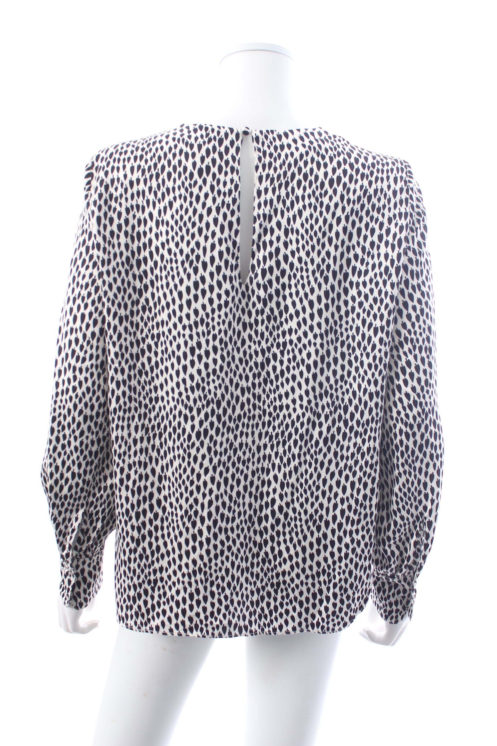 Relaxed-fit printed blouse with round neck, long sleeves, butted cuffs and keyhole fastening at the back