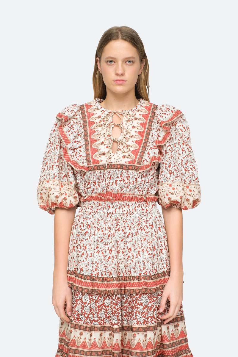 SEA New York Ivette Quilted Floral Puff Sleeve Top