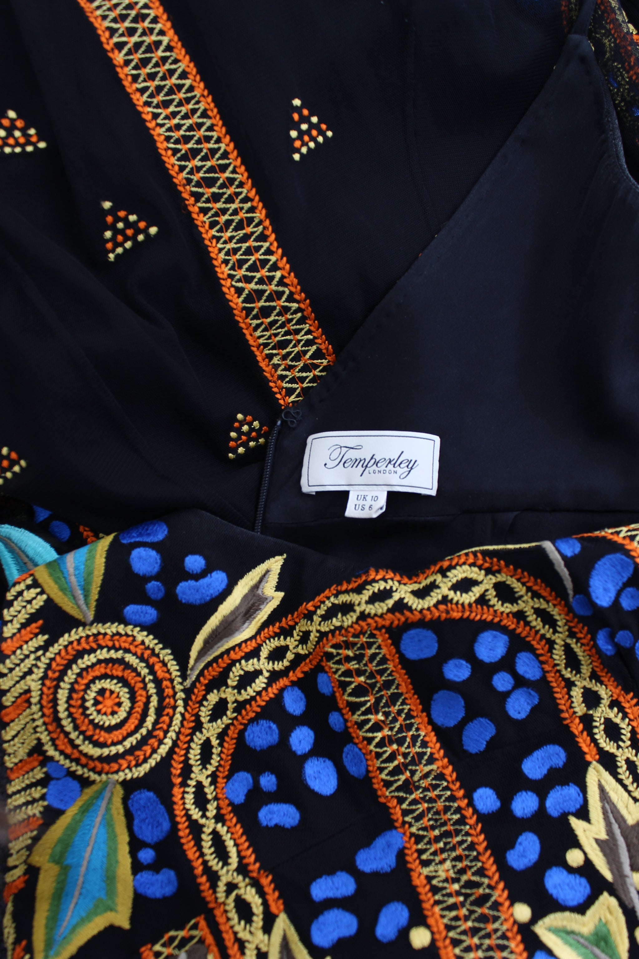 As seen on the Temperley Runway, the Flutura maxi dress is made from embroidered tulle with a silk lining. Shoulder straps, v-neck, full-length pleated skirt. Longer back. Zip fastening through the back