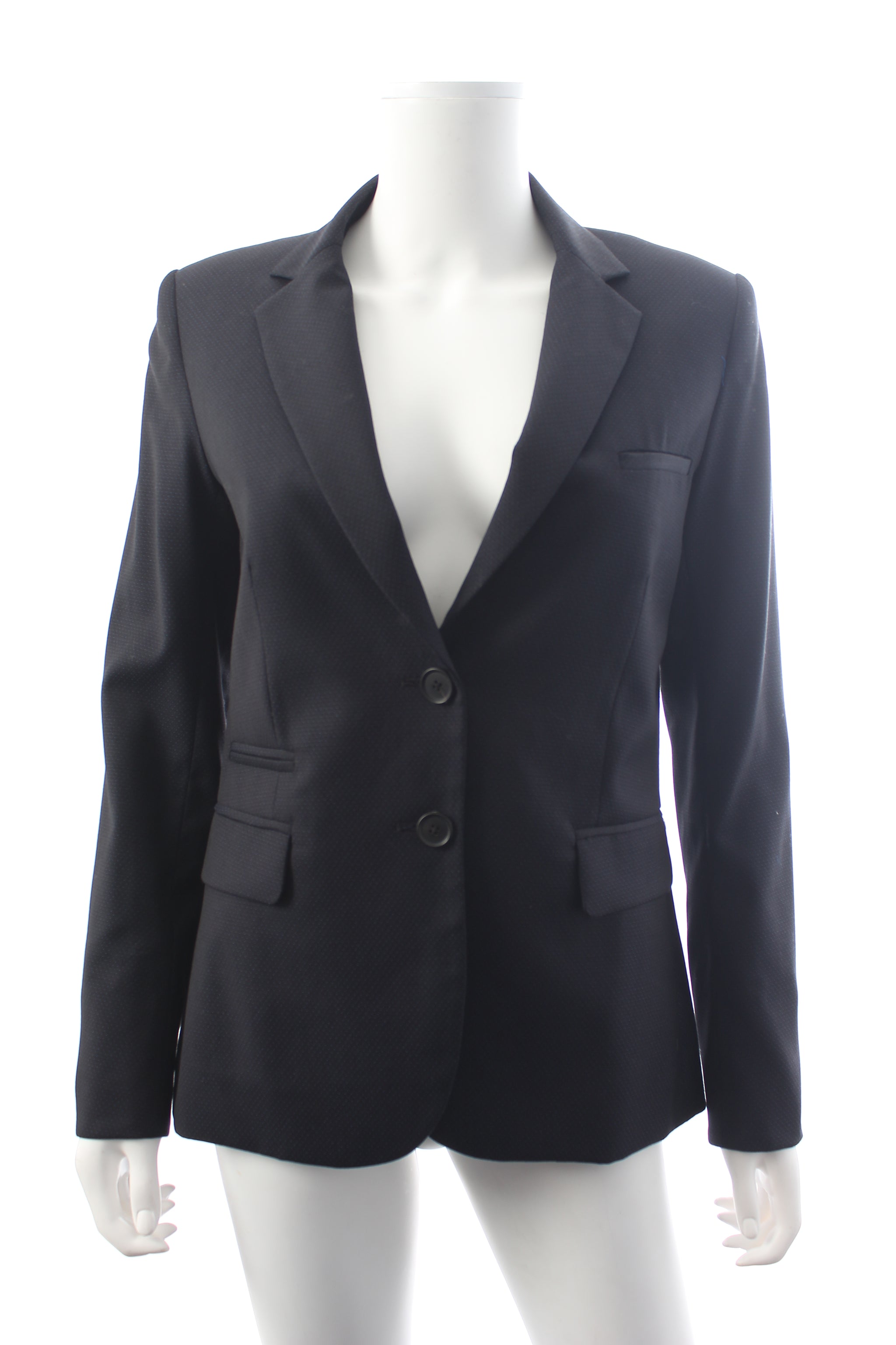 Pure wool tailored blazer with fine dot pattern. Single breasted fastening with flap pockets. Lined