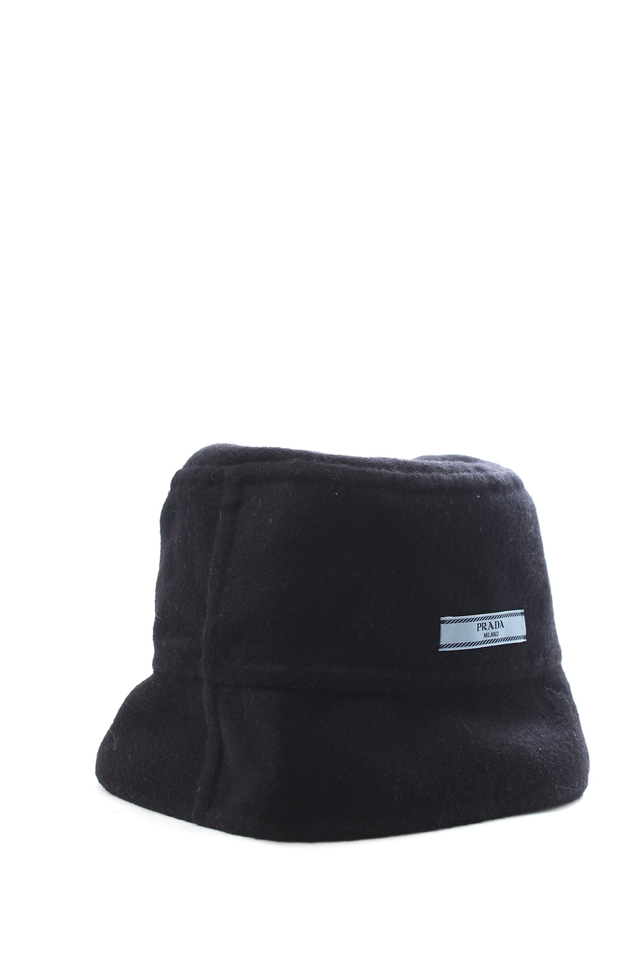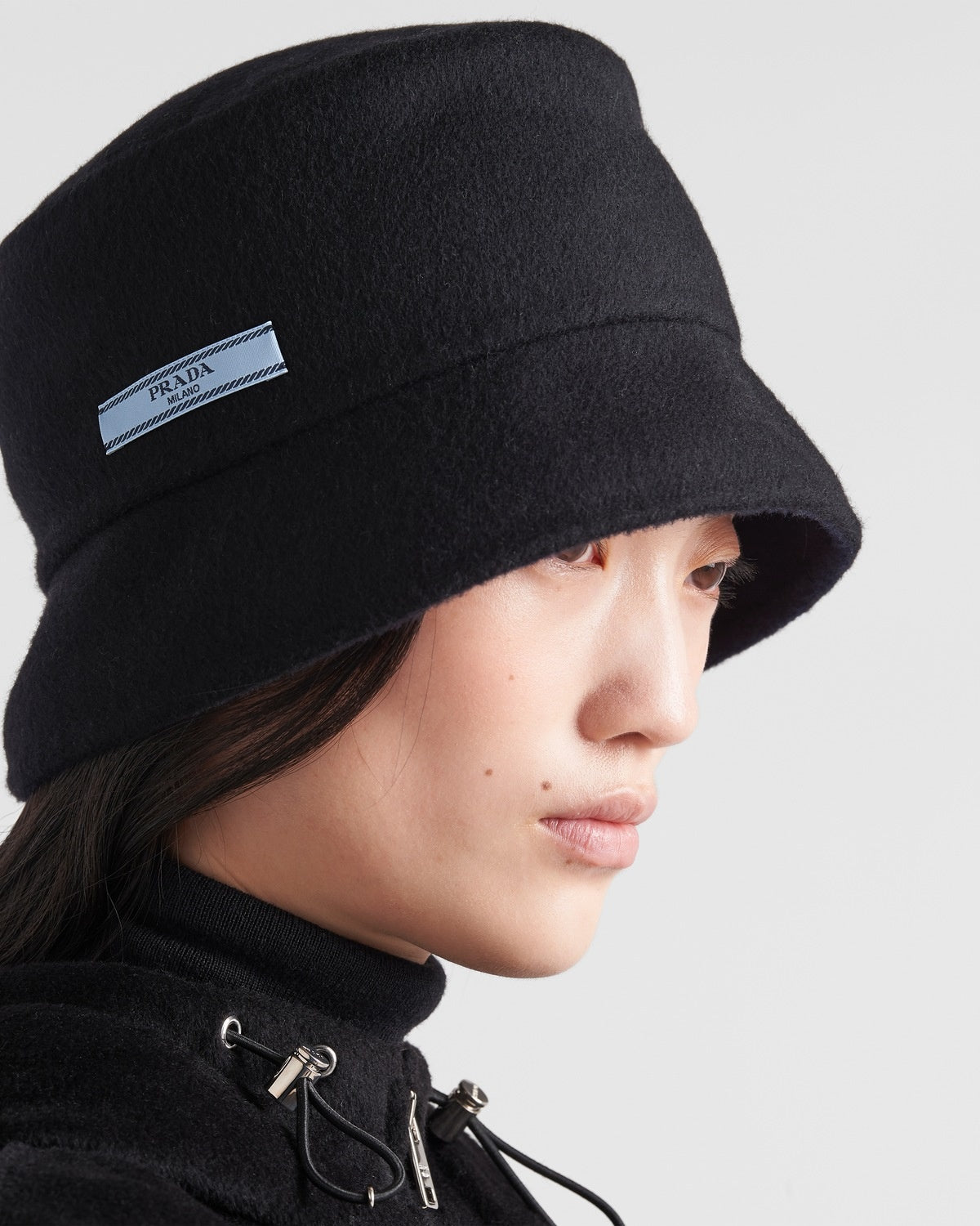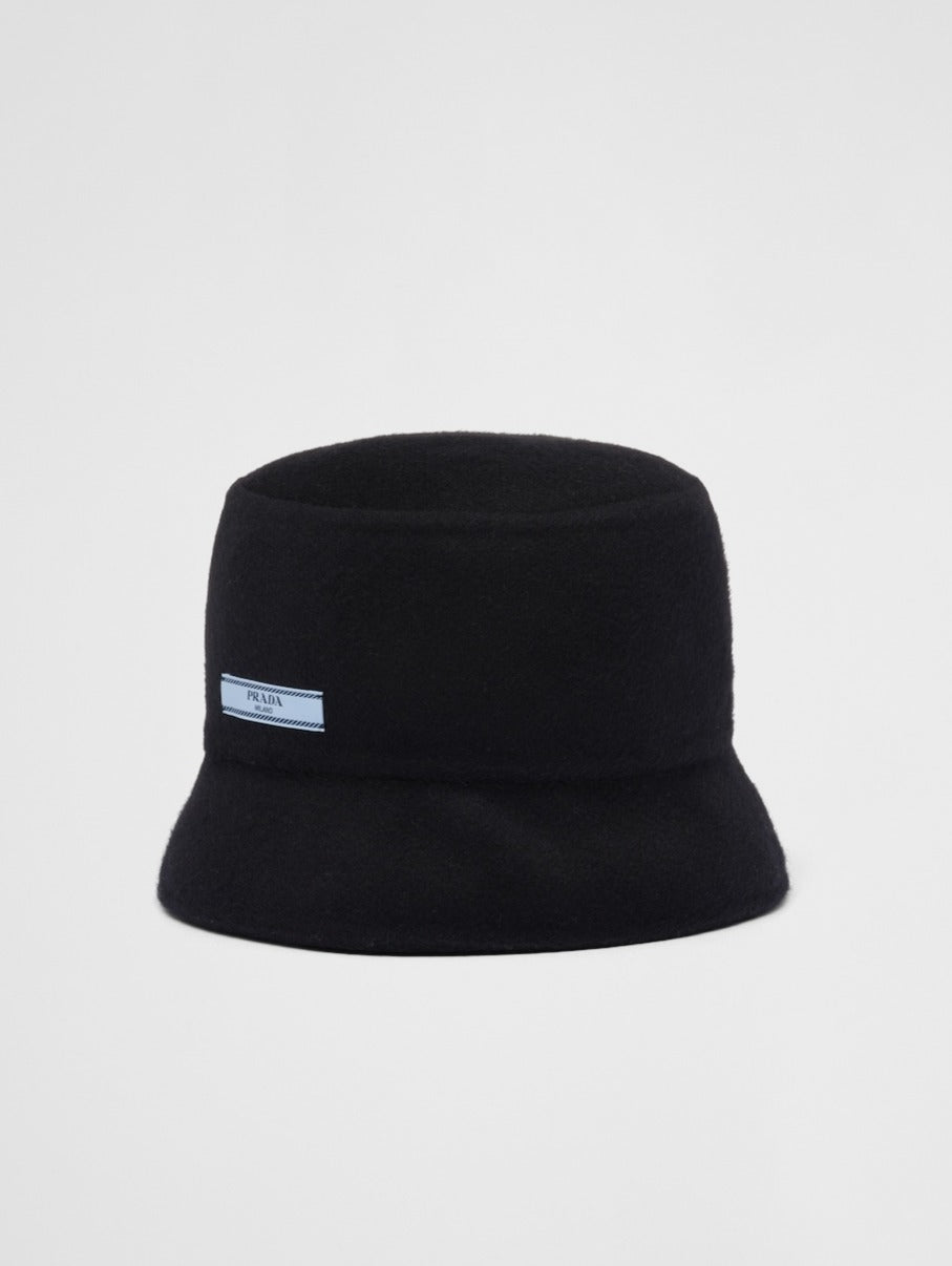 Prada pure cashmere bucket hat with logo patch. Circumference 58 cm