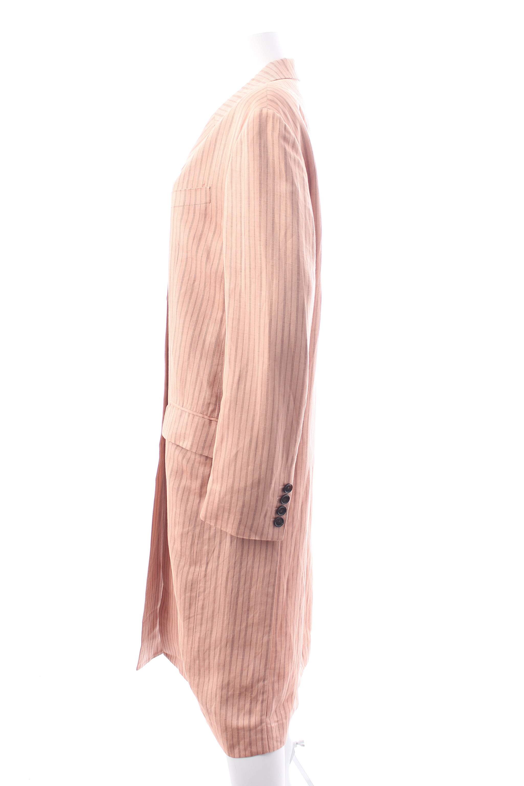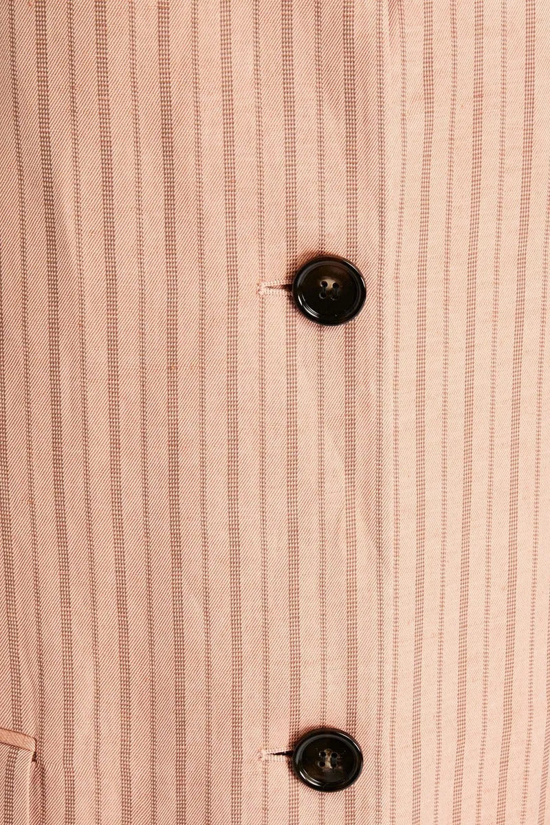 Striped coat in linen-blend twill with shoulder pads, buttoned cuffs, two front flap pockets, breast pocket and back vent. Lined
